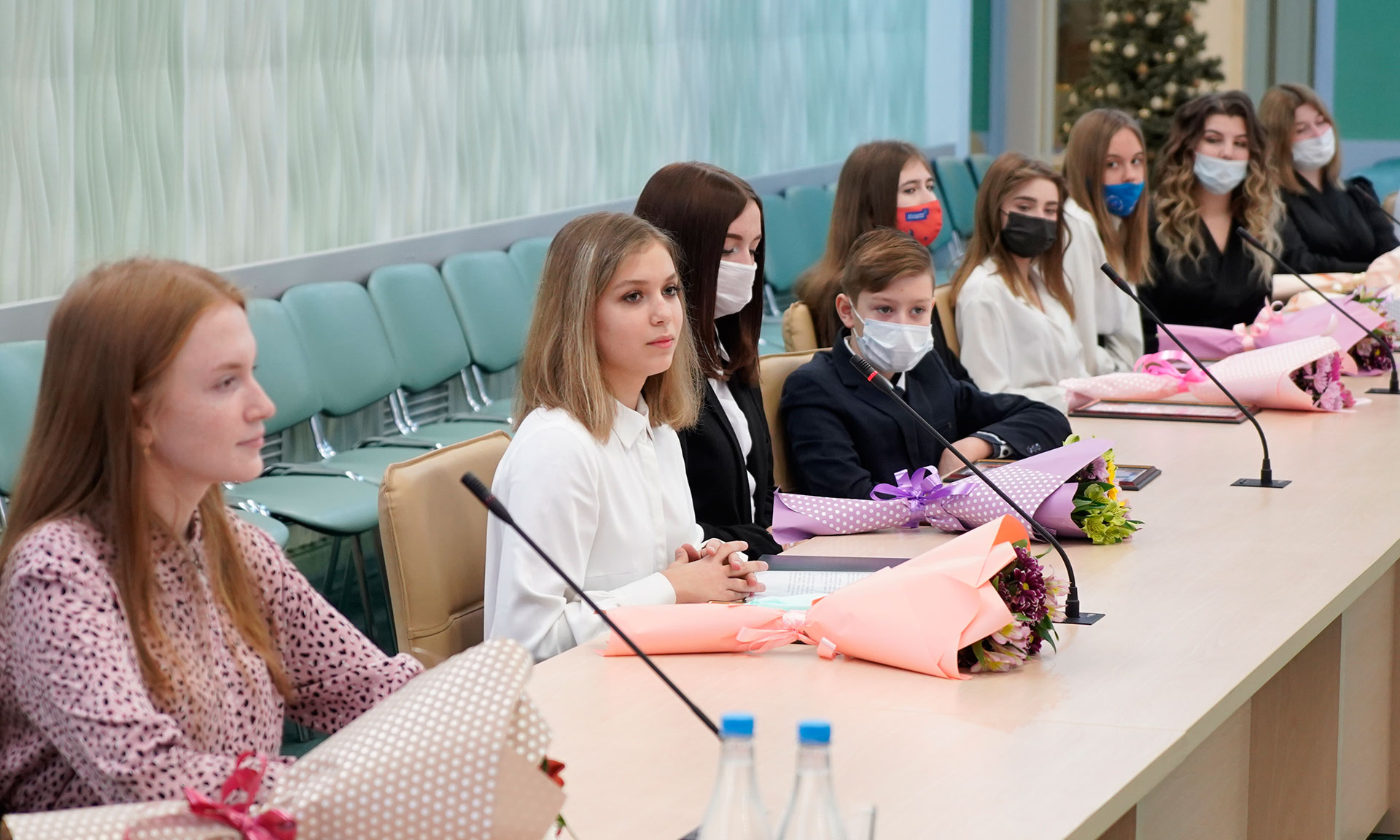 15 декабря в Хрустальном зале Правительства Брянской области состоялась встреча Губернатора Брянской области Александра Богомаза с победителями Всероссийского конкурса «Большая перемена» и их педагогами-наставниками, а также с победителями конкурсов профессионального мастерства «Учитель года», «Воспитатель года», «Профессионал-новатор», «Сердце отдаю детям» и выдающимися спортсменами.