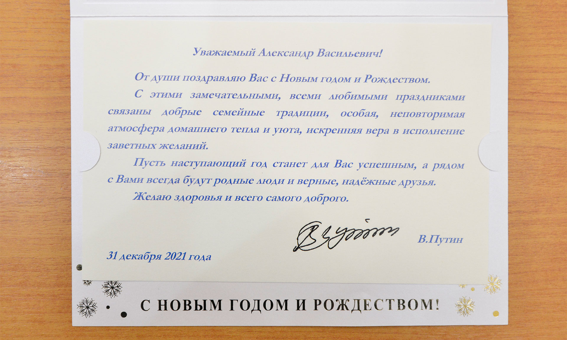 Президент Российской Федерации поздравил Губернатора с Новым годом и Рождеством
