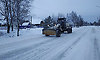 В настоящее время расчисткой автодорог занимаются 2 автогрейдера и трактор. В помощь им сегодня вышел еще один трактор, оснащенный специальным плугом.