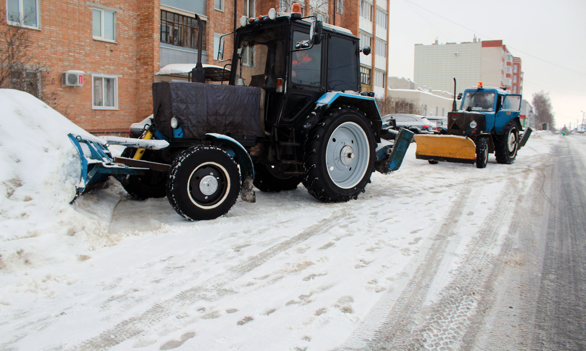 Если объём работы не слишком велик, то один из тракторов работает на территории села Жирятино, а второй в это же время отправляется в расположенные рядом деревни. Особое внимание уделяется при этом жилфонду: от снежного покрова очищают крыши и подъезды многоквартирных домов, убирают сосульки и при необходимости посыпают тротуары пескосмесью. Всё это делается каждый день на протяжении всей зимы. Работников хватает, снег убирается вовремя, наледи на тротуарах нет.