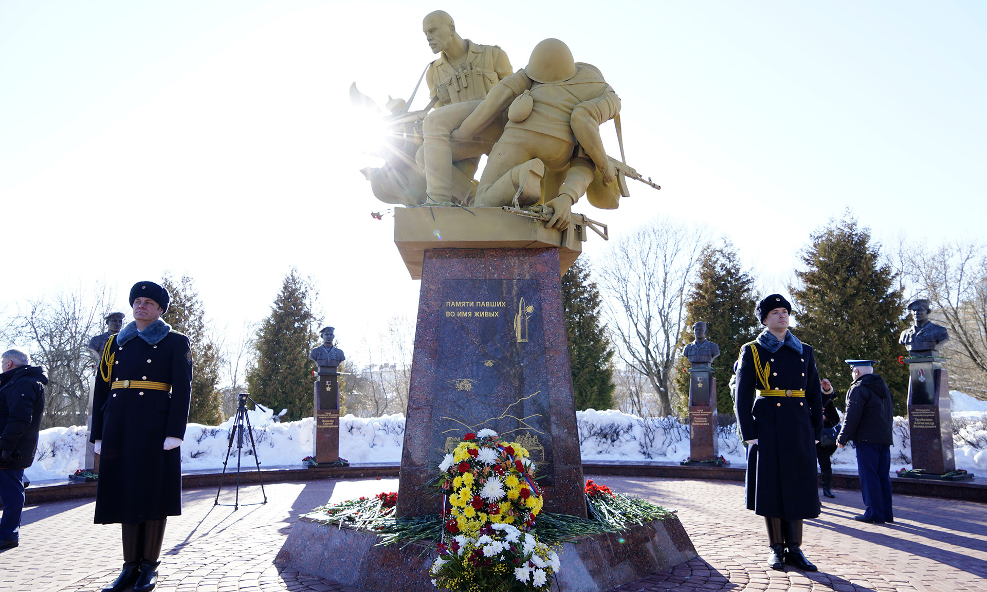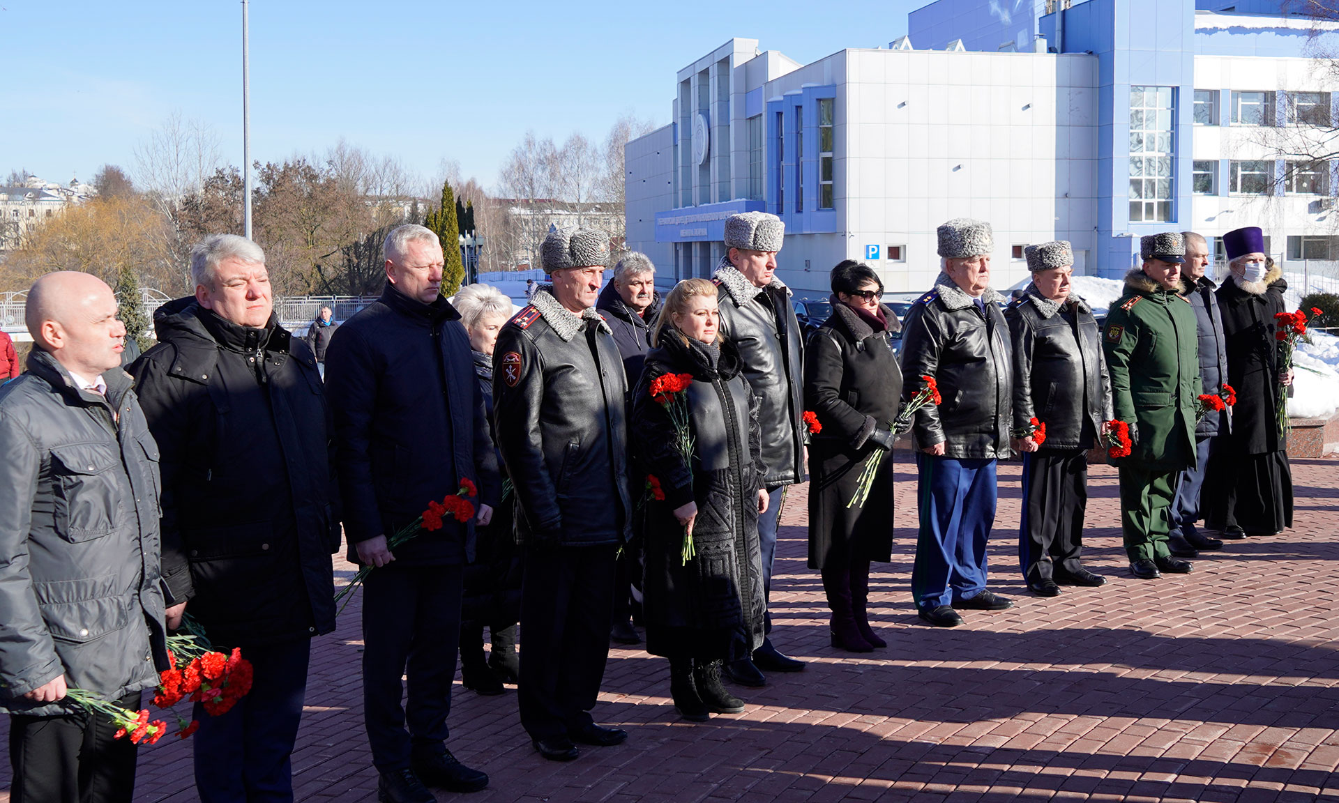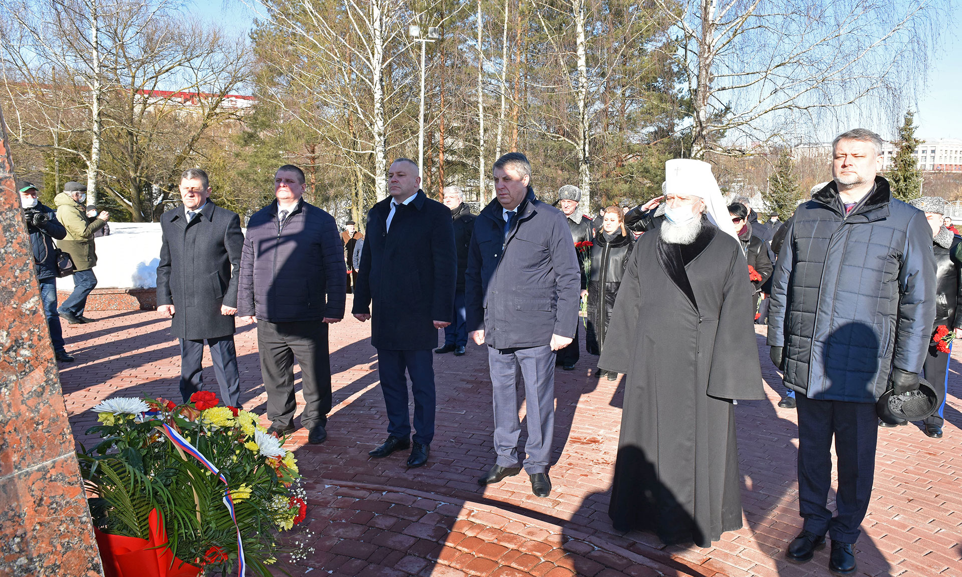 В знак памяти и славы павшим воинам корзину и цветы к памятнику «Круговая оборона» и на Аллее Славы возложили Губернатор Брянской области Александр Богомаз, председатель Брянской областной Думы Валентин Суббот, главный федеральный инспектор по Брянской области Андрей Дьячук, Митрополит Брянский и Севский Александр, Герой Российской Федерации, председатель постоянного комитета по молодежной политике, физической культуре и спорту Брянской областной Думы Александр Постоялко, исполняющая обязанности председателя Брянского областного суда Наталья Третьякова, председатель Арбитражного суда Брянской области Евгений Егоров, прокурор Брянской области Александр Войтович, начальник пограничного управления ФСБ России по Брянской области Сергей Митюшин, начальник управления ФСИН России по Брянской области Сергей Герасимов, руководитель управления ФНС России по Брянской области Андрей Маркелов, военный комиссар Брянской области Марат Урмансов, заместитель председателя постоянного комитета Брянской областной Думы по молодежной политике, физической культуре и спорту, руководитель ветеранской организации Вячеслав Губанов, ветераны войны в Афганистане, родные и близкие.