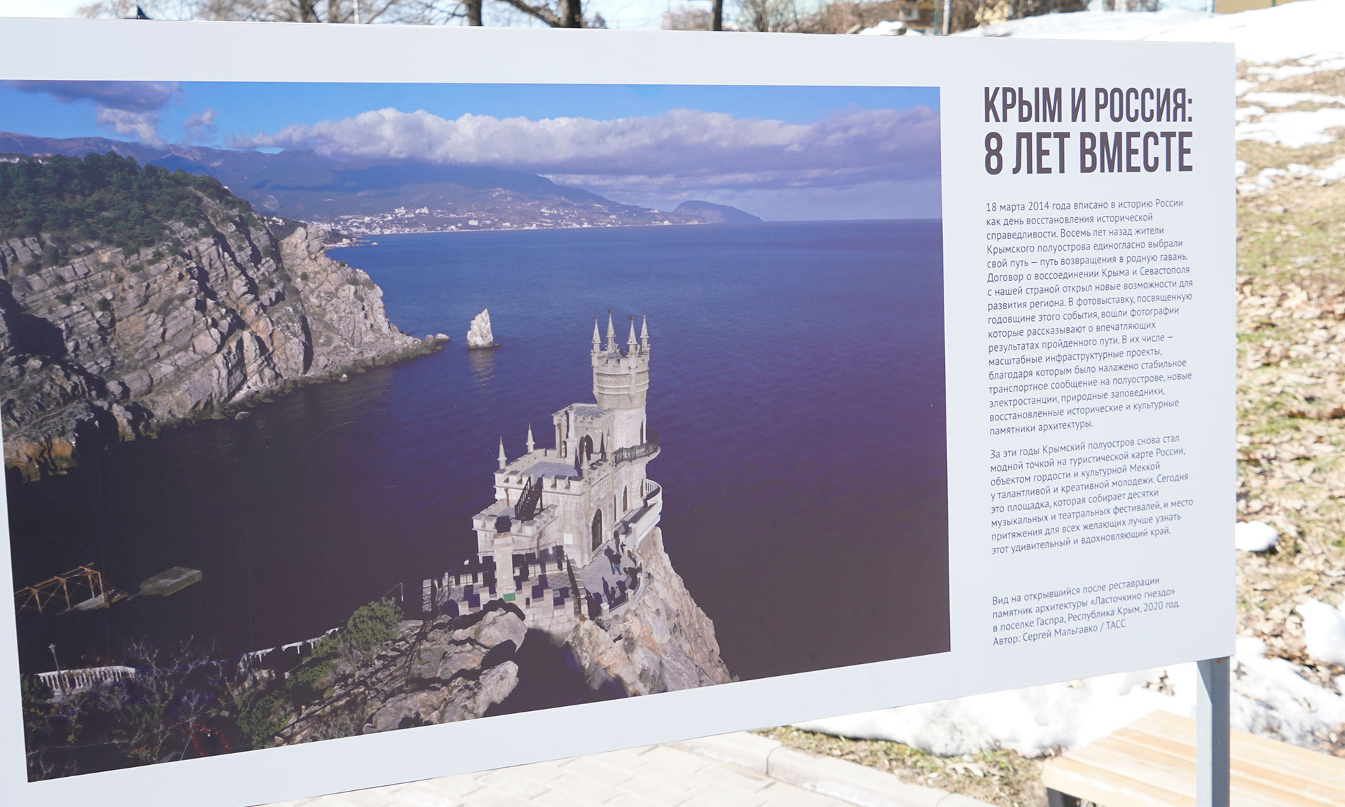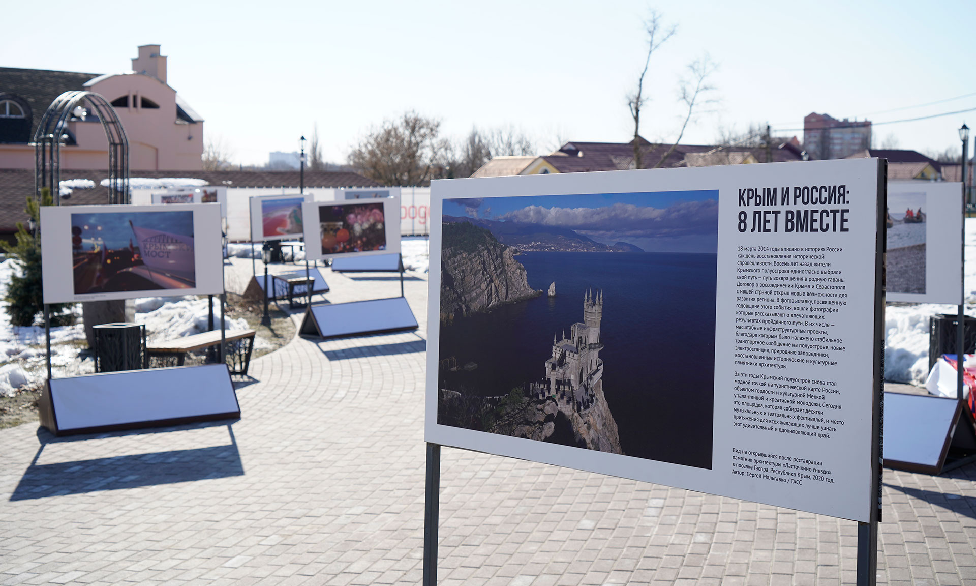 В фотовыставку, посвященную годовщине этого события, вошли фотографии ТАСС, которые рассказывают о впечатляющих результатах пройденного пути. В их числе — масштабные инфраструктурные проекты, благодаря которым было налажено стабильное транспортное сообщение на полуострове, новые электростанции, природные заповедники, восстановленные исторические и культурные памятники архитектуры.