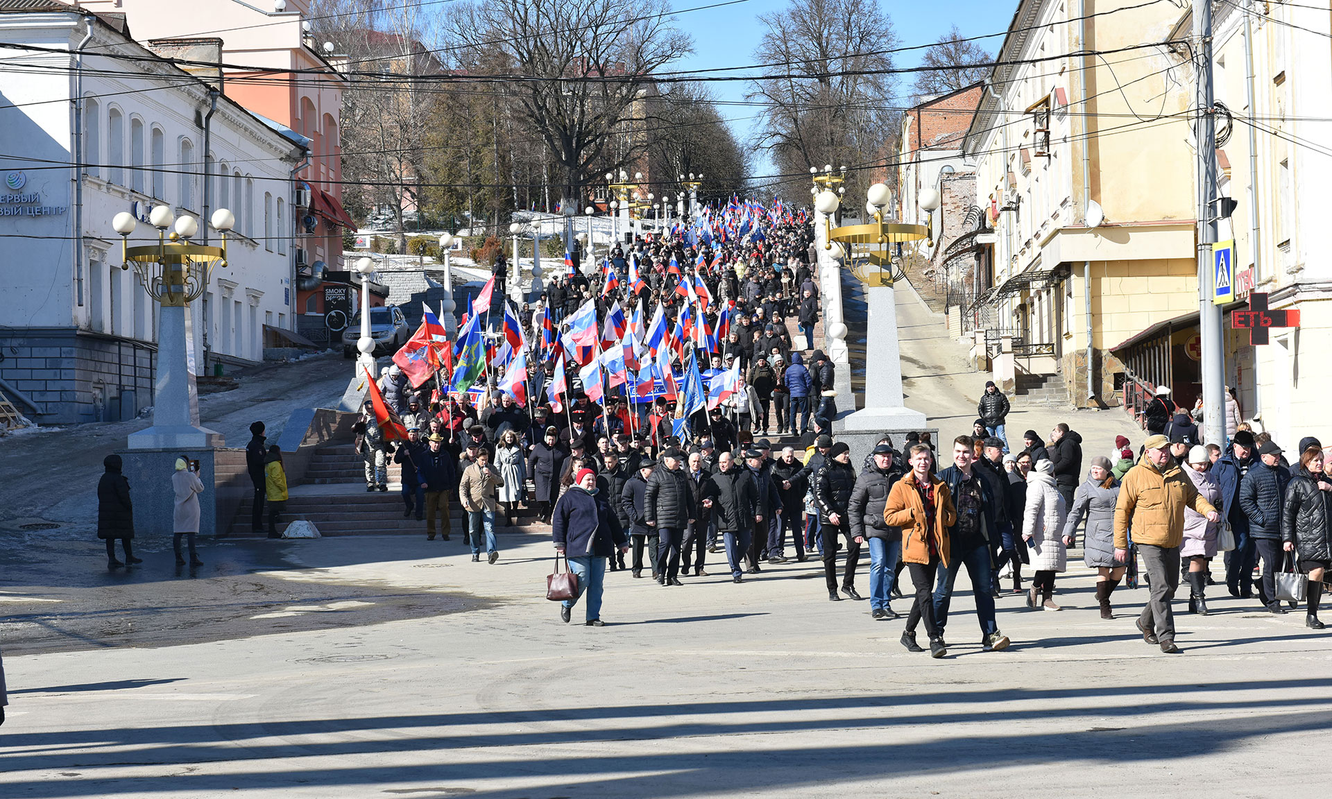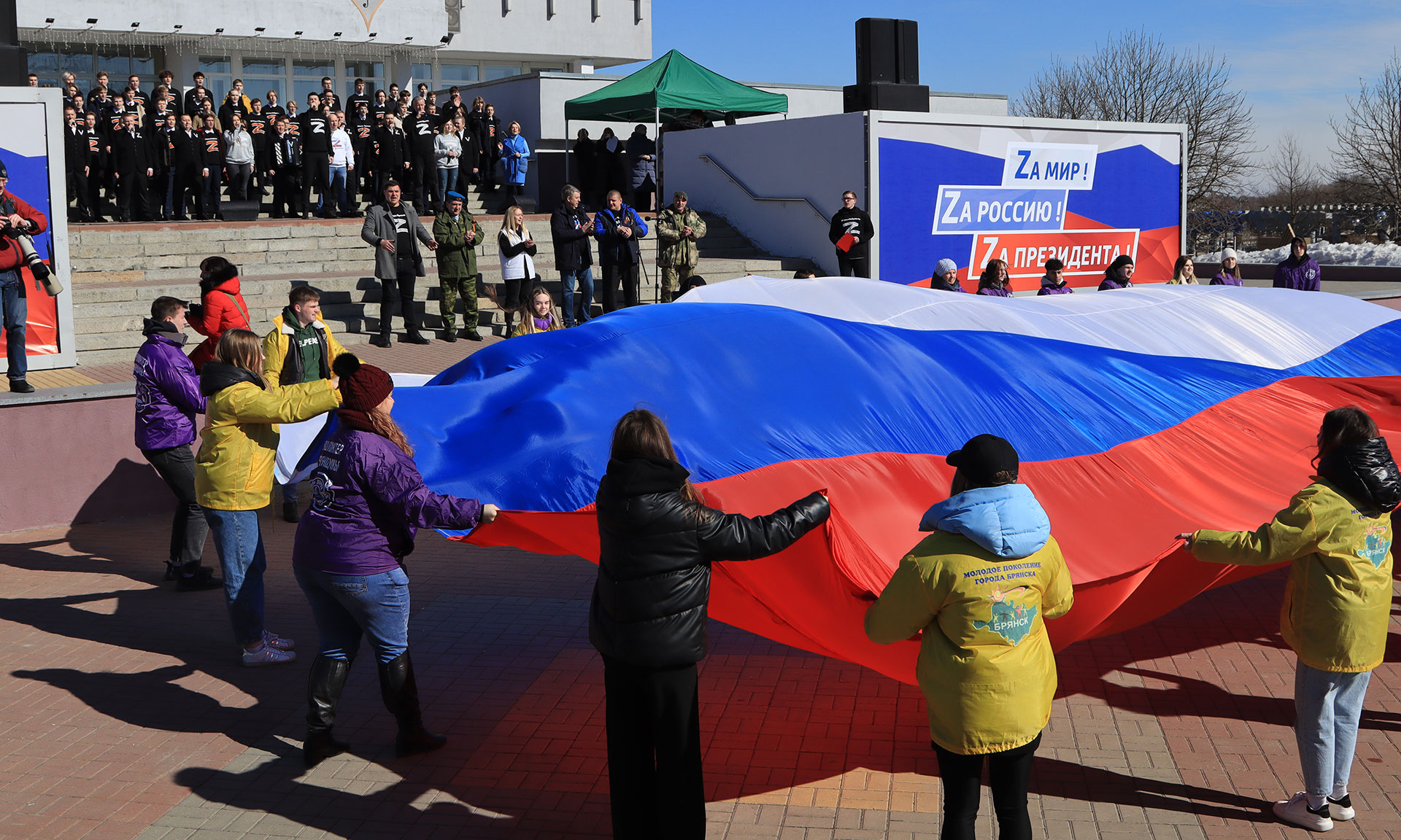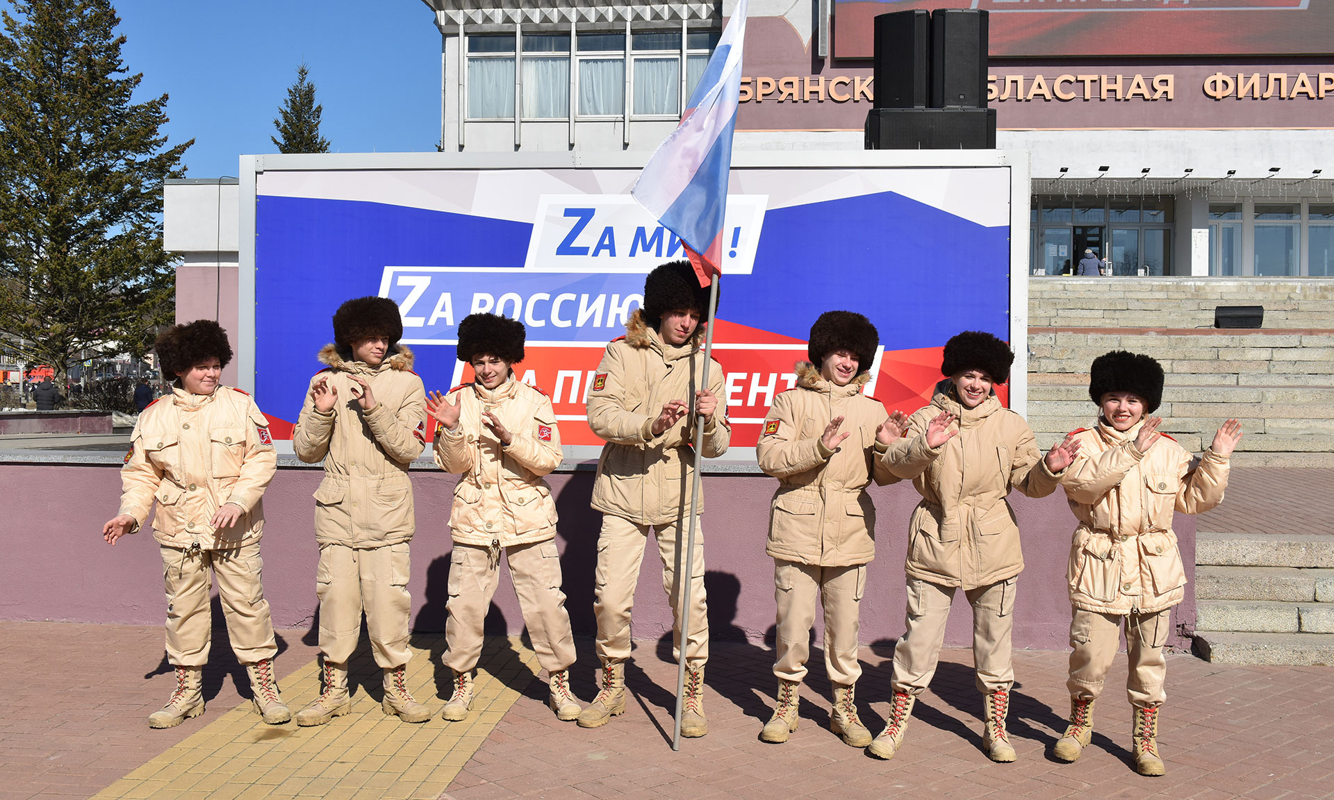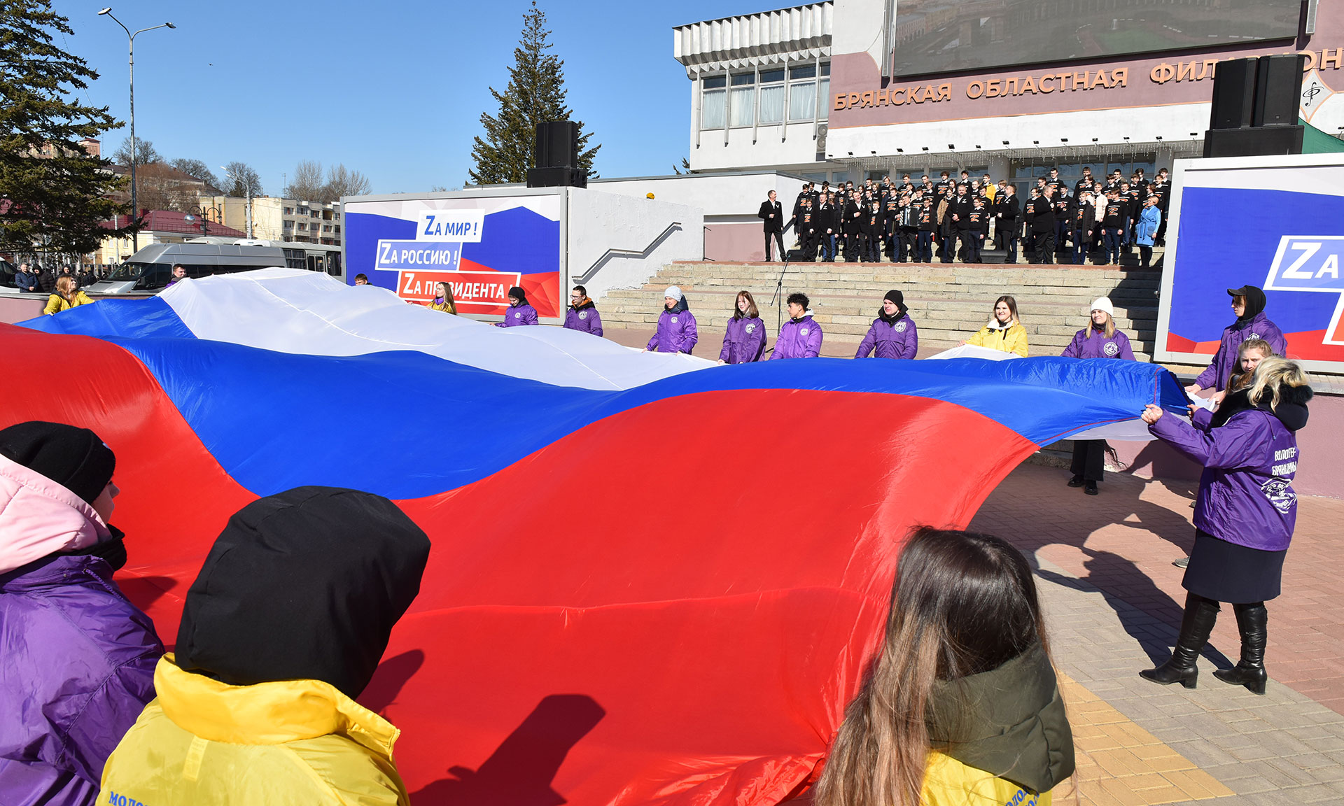 18 марта на Славянской площади в Брянске состоялся митинг-концерт «ZаМир! ZаРоссию! ZаПрезидента!».