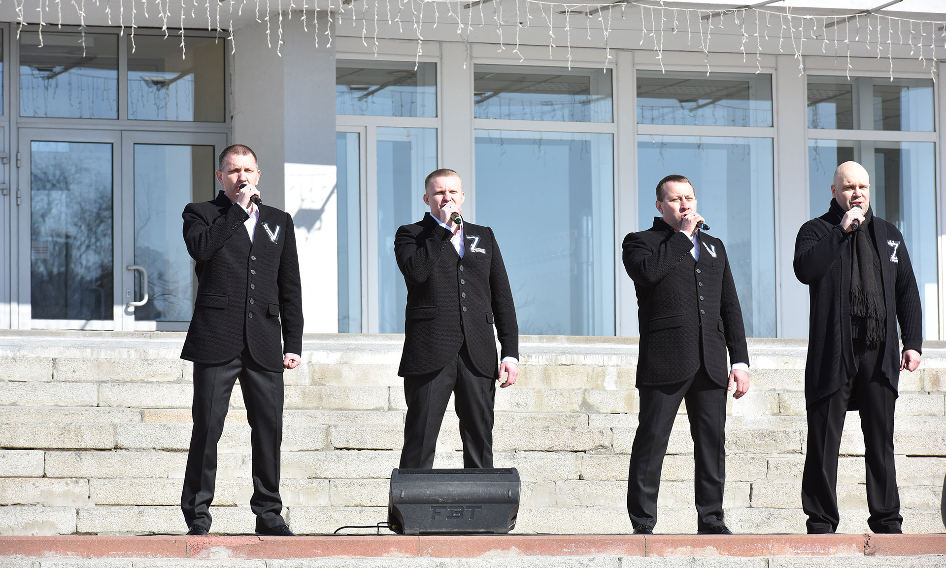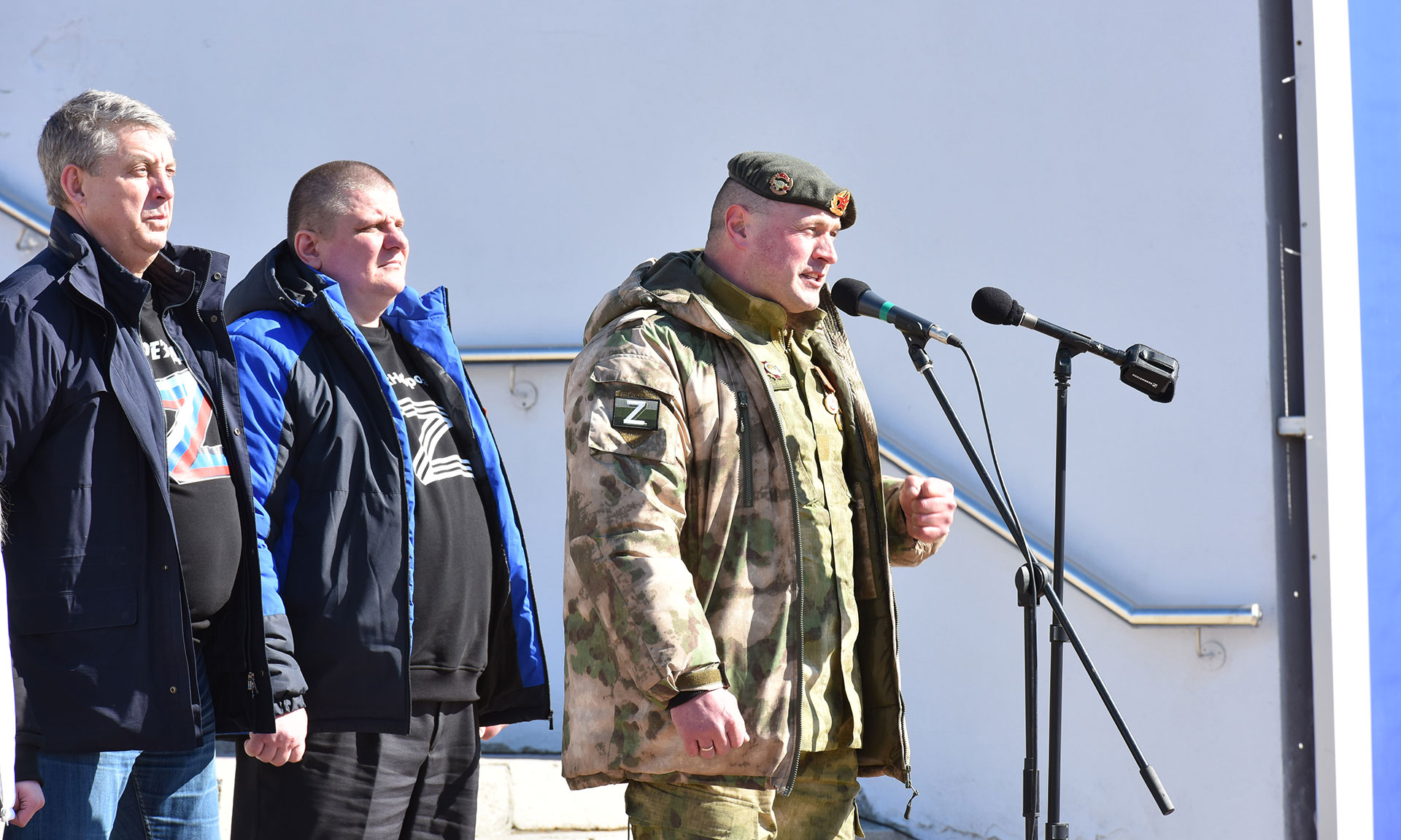 — Сегодня мы празднуем восьмую годовщину со дня воссоединения Крыма с Россией. Это пример национального единства, так называемая «Крымская весна», это пример для всех нас, ведь Россия, это общие корни, общие победы, общая наша история. Сегодня мы все собрались здесь в поддержку решения Президента нашей страны о начале специальной военной операции на Украине, а также о поддержке жителей Донбасса, которые стали свободными и независимыми. Хотелось бы сказать слова благодарности и пожелать нам всем новых достижений и успехов на благо нашей великой страны — России! За мир! За Родину! За Путина! Ура!