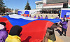 Активисты брянских молодежных организаций развернули огромный российский триколор как символ независимости нашей страны. И снова над площадью звучит «Вперёд, Россия!»: