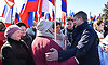 — Добрый день, дорогие земляки! Сегодня мы собрались на Славянской площади, чтобы отметить восьмую годовщину воссоединения Крыма с Россией. Вместе мы — великая страна. Сегодня мы стали едины и с народом Донбасса. И вместе мы встречаем большую русскую весну!