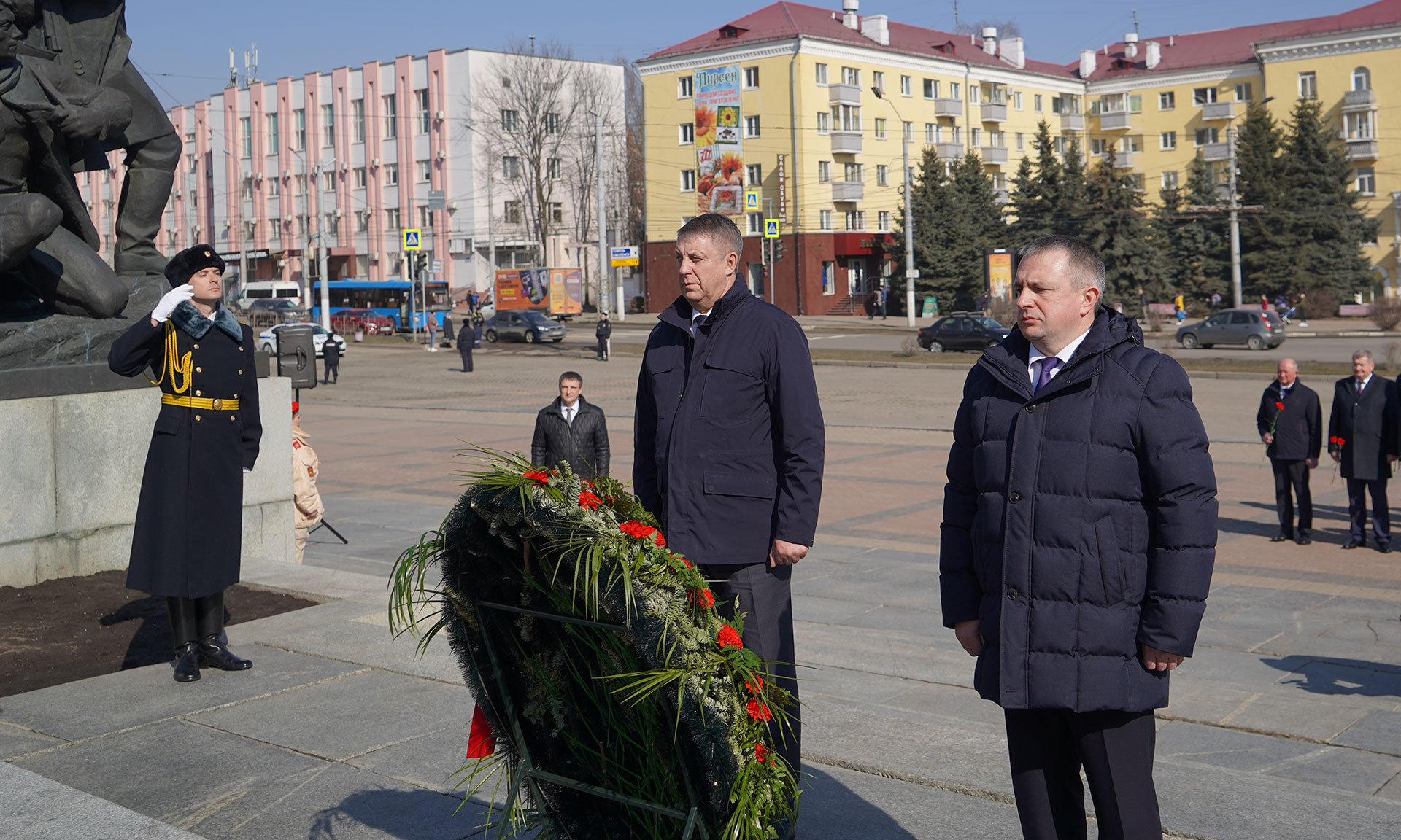Память героев Великой Отечественной войны почтили также руководители Брянской области: Губернатор Брянской области Александр Богомаз, председатель Брянской областной Думы Валентин Суббот, главный федеральный инспектор по Брянской области Андрей Дьячук, сенатор Российской Федерации Галина Солодун, заместитель председателя Брянской областной Думы, председатель комитета по промышленности, строительству, предпринимательству и собственности Сергей Антошин, временно исполняющий обязанности заместителя Губернатора Брянской области Николай Симоненко, заместители Губернатора Брянской области Владимир Реунов и Борис Грибанов.