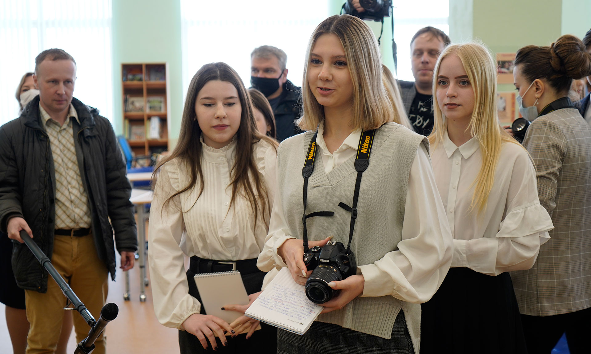 Гости осмотрели учебные классы центра образования, спортивные залы, бассейн, а в библиотеке пообщались со школьниками. В холле в преддверии Дня Победы 9 Мая ребята и педагоги организовали выставку «Плакаты тоже воевали» с изображением плакатов, которые распространялись в годы Великой Отечественной войны и призывали всех граждан нашей страны бороться с фашизмом.