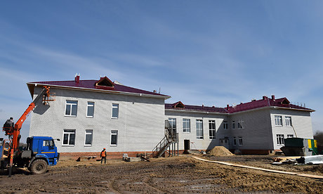 В настоящее время подрядчиком завершены работы по возведению зданий школы-сада, гаража и овощехранилища, установке блочной котельной с монтажом дымовой трубы. Смонтированы наружные сети теплотрассы, водопровода, канализации и газопровода низкого давления. Установлены противопожарные резервуары для воды. Завершаются работы по устройству кровли. Ведутся работы по устройству внутренних перегородок на металлическом каркасе, монтажу оконных блоков, разводке внутренних сетей коммуникаций и вентиляции, штукатурные работы.
