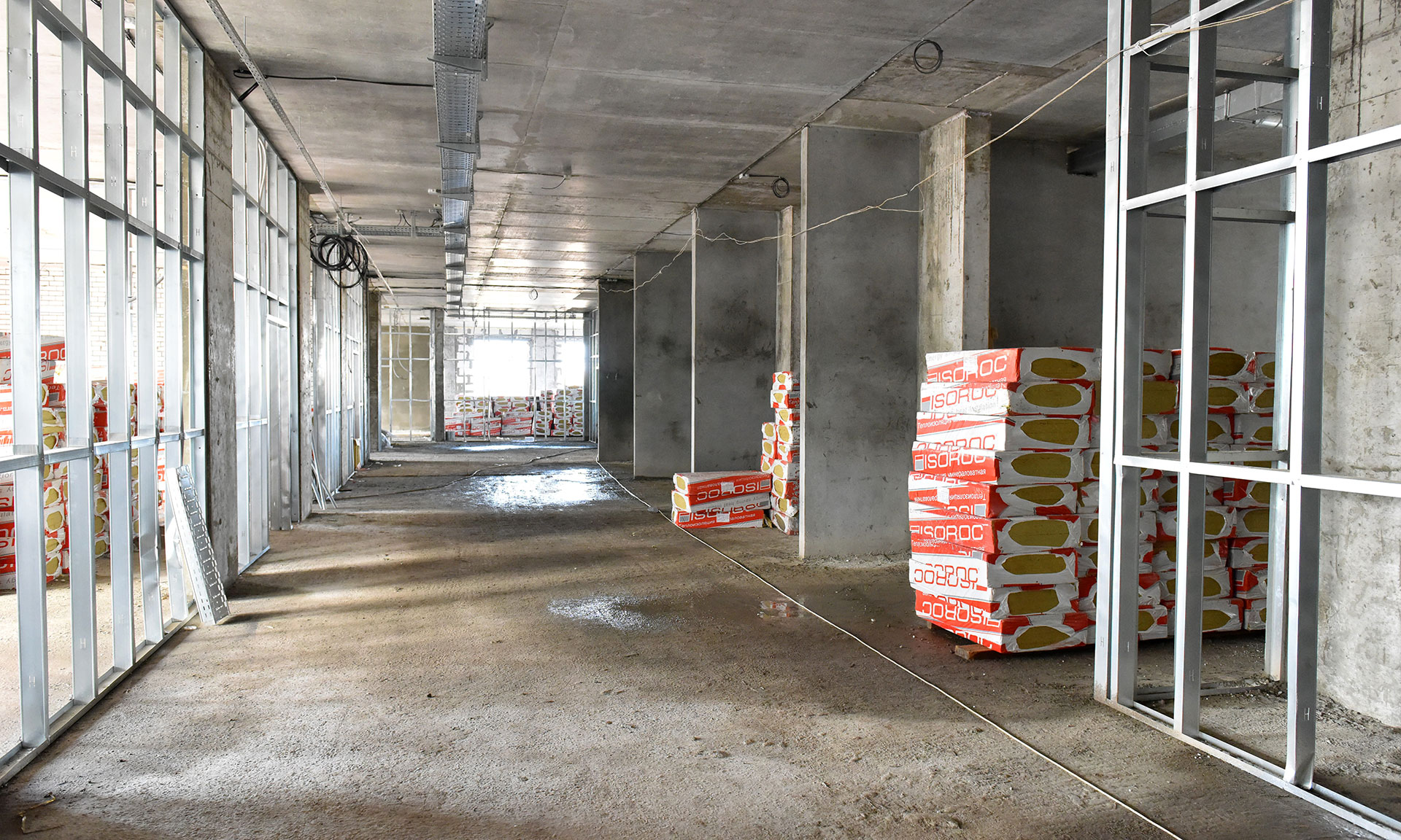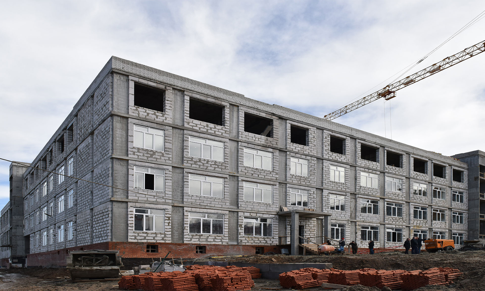 Строительство школы началось в сентябре 2020 года. Работы здесь ведет опытная подрядная организация ООО «Стройдело». Стоимость муниципального контракта составляет 923,3 млн рублей. К сегодняшнему дню здание школы полностью готово, завершается остекление. Внутри ведется монтаж перегородок, штукатурка стен продолжается разводка электрики, водопровода, канализации и теплоснабжения по зданию. Параллельно началась вертикальная планировка пришкольной территории. Ежедневно здесь трудятся около 100 человек.