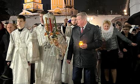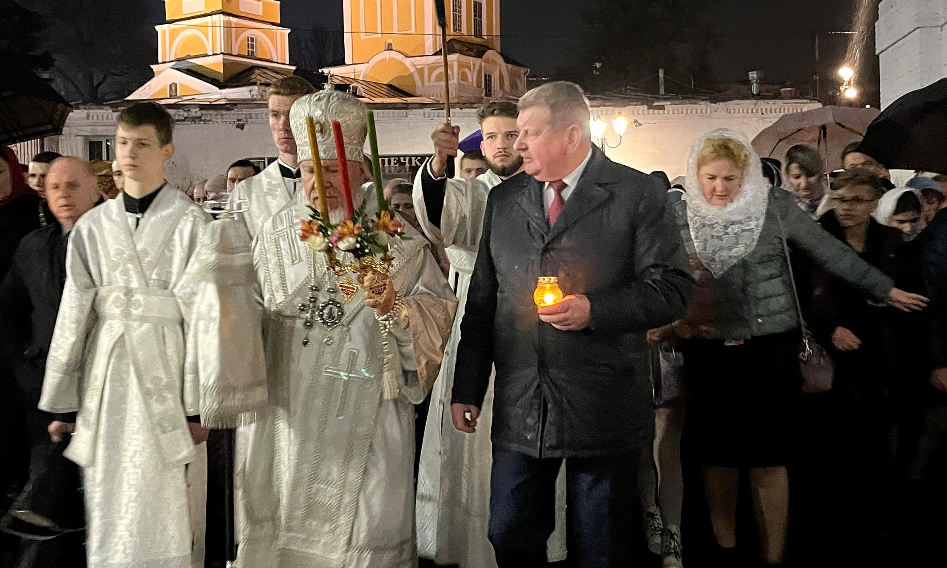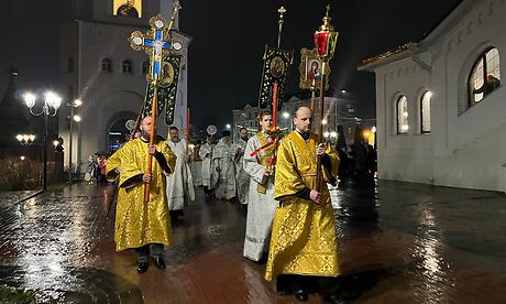 В полночь под пение стихиры «Воскресение Твое, Христе Спасе, Ангели поют на Небесех, и нас на земли сподоби чистым сердцем Тебе славити» был совершен крестный ход вокруг главного городского храма.