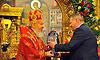В завершении утрени глава Брянской митрополии и заместитель Главы региона Николай Симоненко обменялись пасхальными поздравлениями и праздничными дарами. Владыка Александр поздравил всех собравшихся в святую ночь в кафедральном соборе с главным христианским праздником: