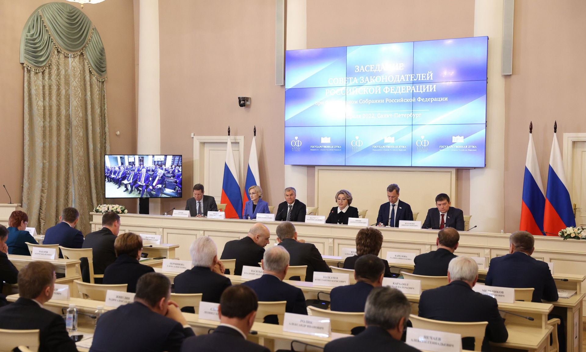 Центральным событием двухдневного форума стало заседание Совета законодателей. Участие в дискуссии по вопросам развития российской экономики в условиях санкций и обеспечения финансовой устойчивости регионов приняли председатели обеих палат российского парламента Валентина Матвиенко и Вячеслав Володин, министры, сенаторы, депутаты.