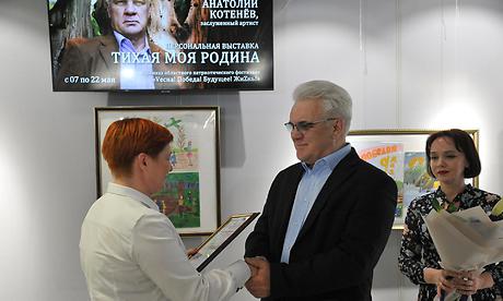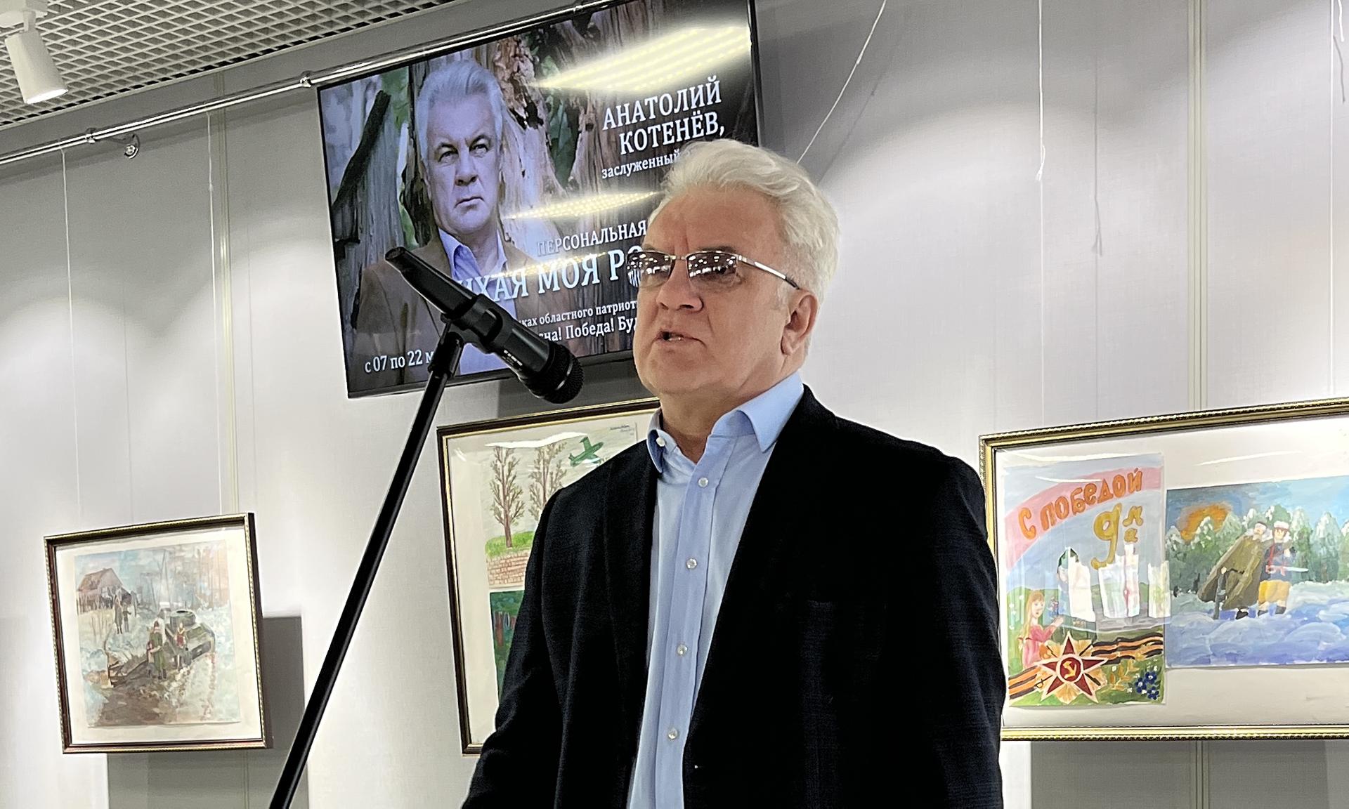 7 мая в галерее «Персона» детской школы искусств № 1 имени Т. П. Николаевой состоялось торжественное открытие персональной выставки художественных работ актера театра и кино, заслуженного артиста Республики Беларусь Анатолия Котенева «Тихая моя Родина».Открывшаяся в преддверии самого значимого для нашей страны праздника, Дня Победы, выставка организована в рамках областного патриотического фестиваля «Veсна! Победа! Будущее! ЖиZнь!».
