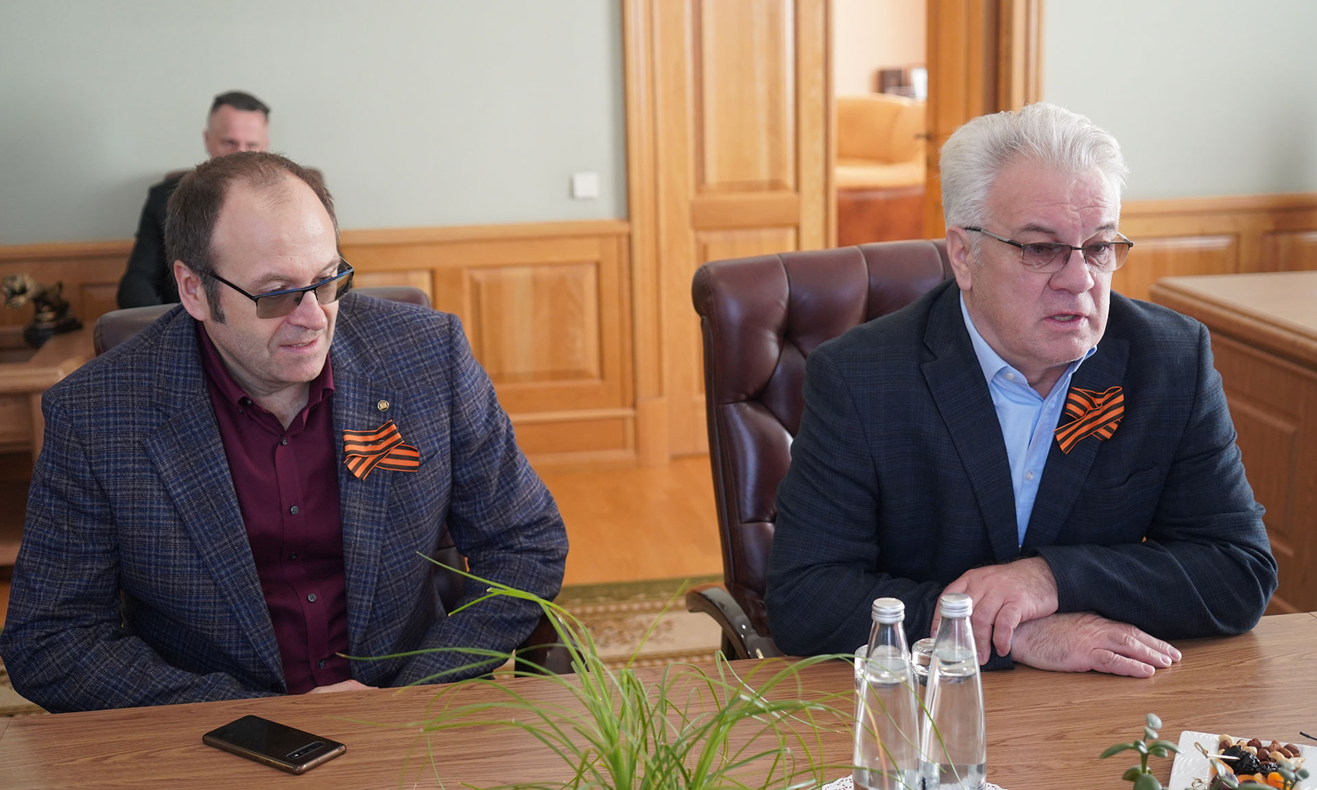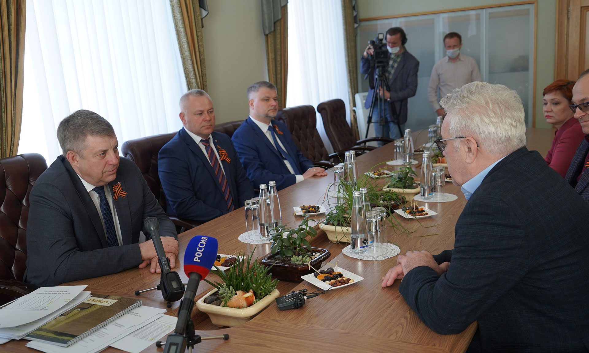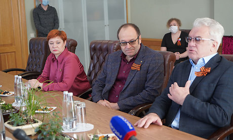 9 мая состоялась рабочая встреча Губернатора Брянской области Александра Богомаза с актером театра и кино, заслуженным артистом Республики Беларусь Анатолием Котенёвым и продюсером и кинорежиссером Федором Кратом.