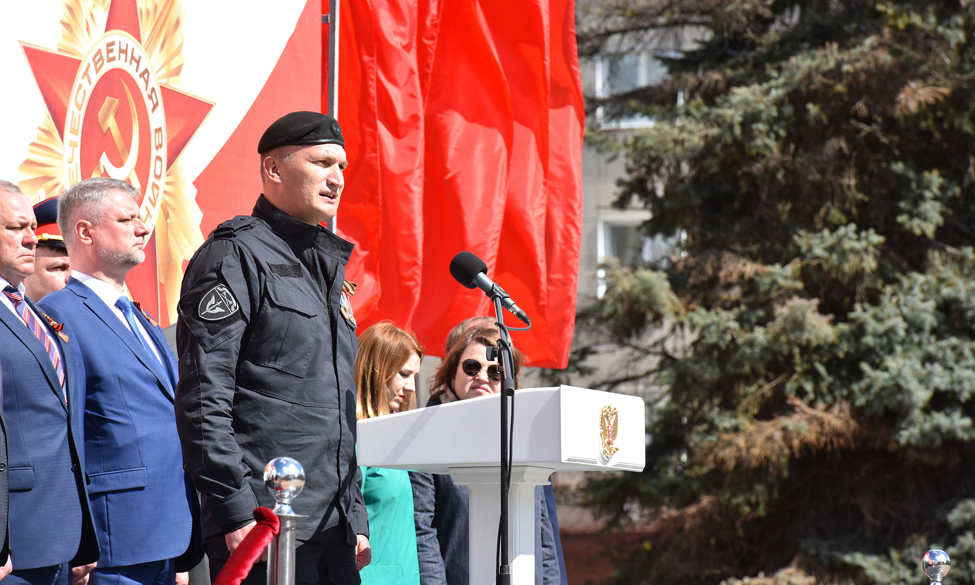 На площади — парадные расчеты 488-го мотострелкового Симферопольского Краснознамённого, ордена Суворова полка имени Серго Орджоникидзе. Торжественным маршем прошли лучшие военнослужащие полка, отличники боевой учебы, спортсмены разрядники. Многие военнослужащие, стоящие в строю, уроженцы нашей родной Брянщины. Сегодня офицеры, прапорщики, сержанты и солдаты полка с честью и достоинством выполняют задачи специальной военной операции.
