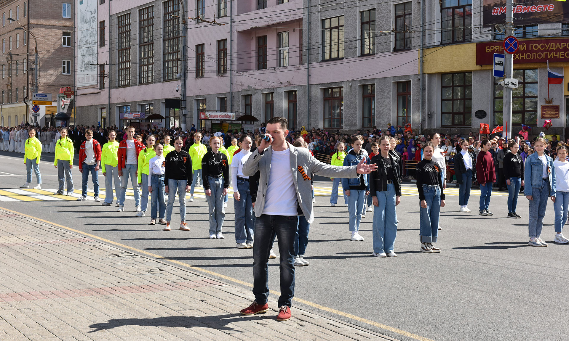 Площадь Ленина заполнили молодежные творческие коллективы и исполнили хореографическую композицию «Юность моя», которая завершилась стихотворением «Дед, это я виноват» в исполнении артиста Брянского областного театра драмы Дмитрия Ненахова. В исполнении сводного хора прозвучала песня «Хотят ли русские войны». В финале Максим Дегтерев и ансамбль «Ватага» исполнили песню «Россию строят мужики».