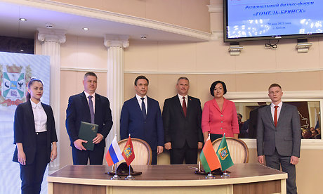 По итогам пленарного заседания регионального бизнес-форума «Гомель-Брянск» состоялось подписание соглашения о сотрудничестве между государственным учреждением «Администрация свободной экономической зоны «Гомель-Ратон» и Союзом «Торгово-промышленная палата Брянской области».