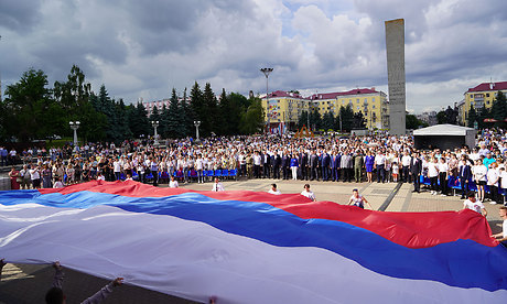 Все участники мероприятия исполнили Гимн Российской Федерации. На площади был развернут российский флаг.