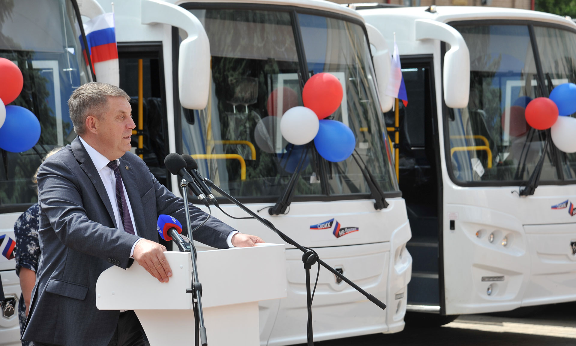 Мы сегодня собрались здесь с вами по знаковому событию. У нас хорошая, добрая традиция, когда мы на центральной площади города Брянска на протяжении многих лет вручаем ту или иную технику. Сегодня мы вручим 66 автобусов, которые были закуплены за счет областного бюджета для двух наших предприятий, это Брянская автоколонна № 1403 и Новозыбковское пассажирское автотранспортное предприятие.