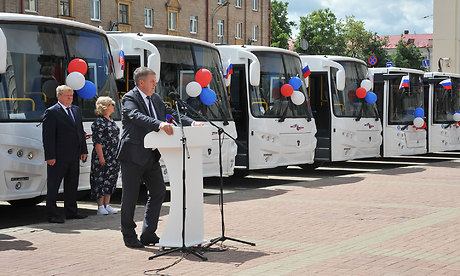 Сегодня мы пошли дальше. Мы закупили 66 автобусов, которые передадим двум автотранспортным предприятиям для того, чтобы улучшить автобусное сообщение между областной столицей, городом Брянском, и муниципальными районами, а также между муниципальными районами. Это та работа, которая проводится не один год, и она будет продолжена в дальнейшем.