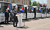 — Уважаемые представители автотранспортных предприятий Брянщины! Сегодня — очень яркий, знаменательный день и для города, и для области: 66 новых комфортабельных автобусов выходят в рейс. А это огромное подспорье нашим жителям, это комфортные перевозки людей!