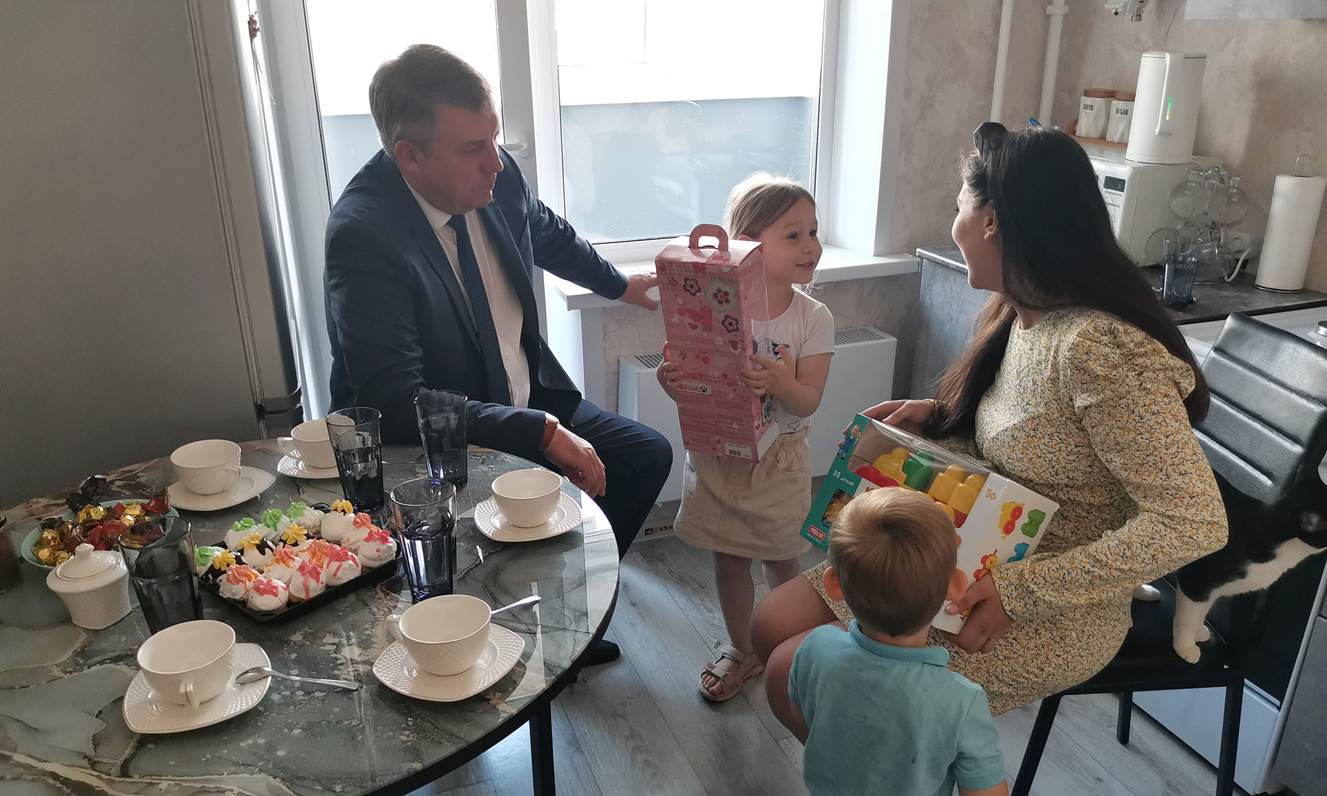 — Добрый день, дорогие друзья! Сегодня у нас знаковое событие как для вас, кто получит ключи от благоустроенных квартир, так и для всех нас, потому что мы, власть, выполняем задачи, которые ставит перед нами Президент нашей страны Владимир Владимирович Путин по обеспечению детей-сирот благоустроенным жильем.
