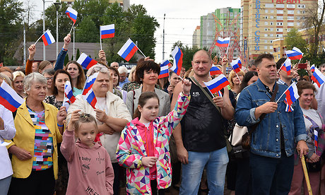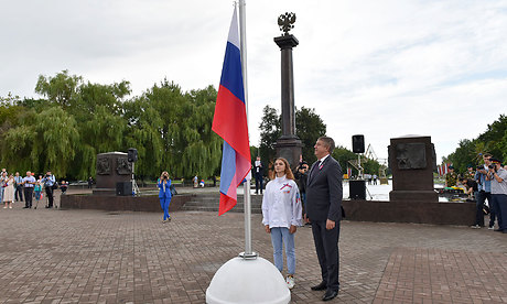 Почетное право поднять флаг Российской Федерации было предоставлено Губернатору Брянской области Александру Богомазу и отличнице в учебе, чемпионке города Брянки Луганской Народной Республики по гандболу Диане Сидоровой.