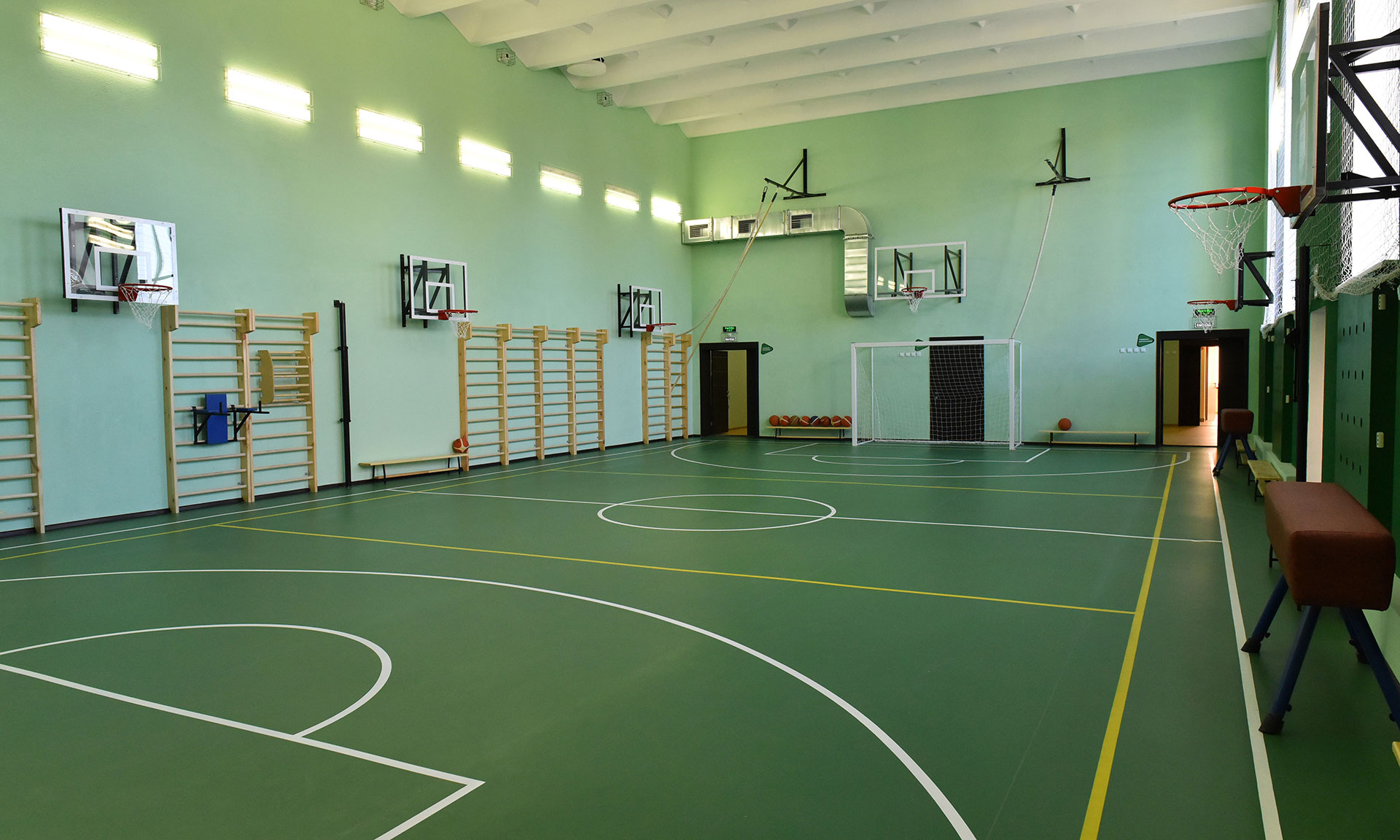 В музыкально-спортивном зале для дошкольников будут проводиться занятия музыкой и физкультурой, а также праздники и развлечения. В зале находится современное оборудование, микшерная установка, микрофоны. Это позволит проводить праздники не только дошкольникам, но и в школе. Спортивный зал школы оборудован всем необходимым для занятий спортом. Здесь можно проводить соревнования и товарищеские матчи.