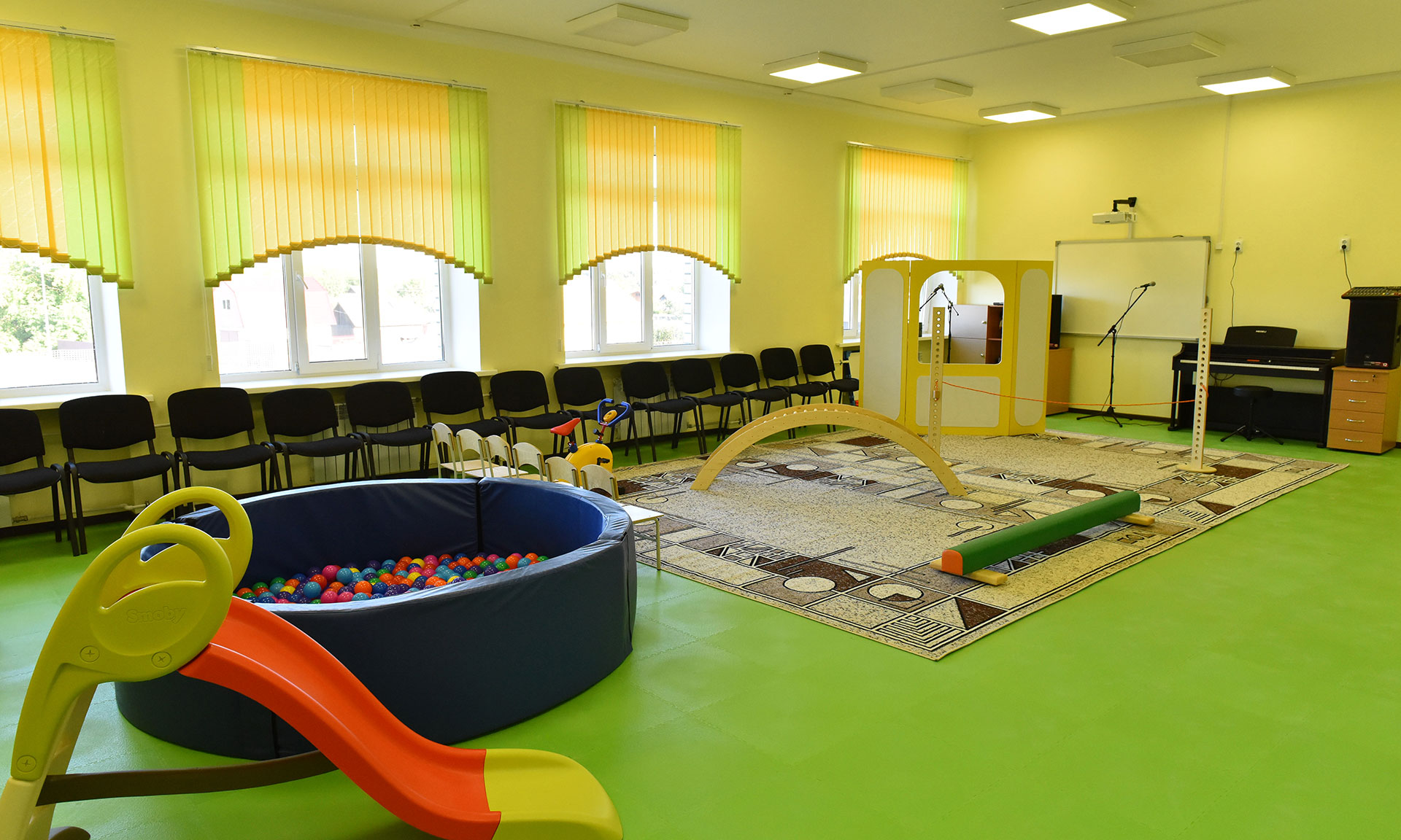 В детском саду будут находиться две разновозрастные группы. Он рассчитан на сорок воспитанников. В группах имеются просторные раздевалки, игровые комнаты, спальни, раздаточные для еды. Приобретено игровое оборудование, студия для рисования песком. Все игрушки российского производителя, много развивающих игр.