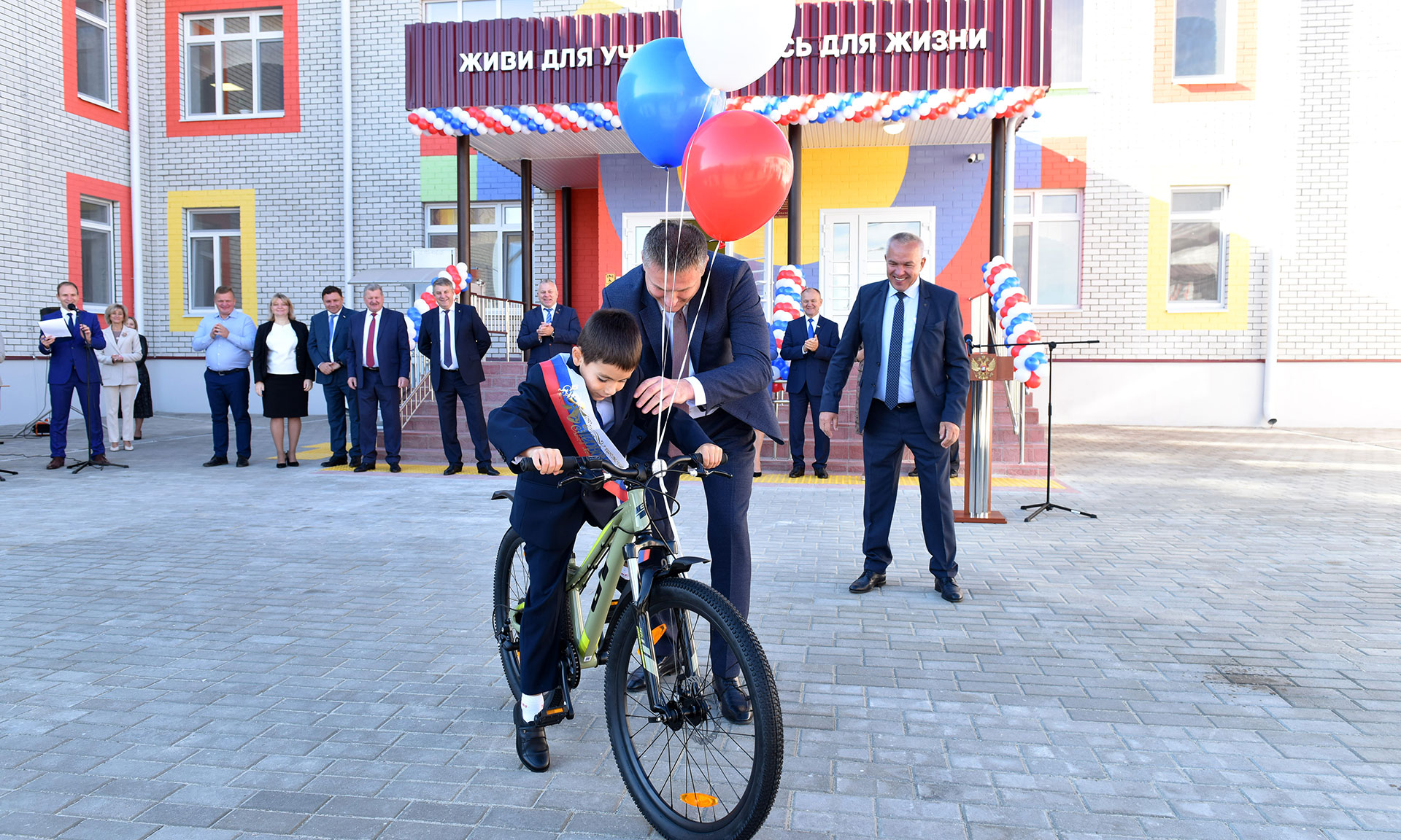 У первоклассника Алексея Дюкова двойной праздник — 1 сентября он празднует и свой день рождения. В честь такого события Губернатор вручил имениннику велосипед.