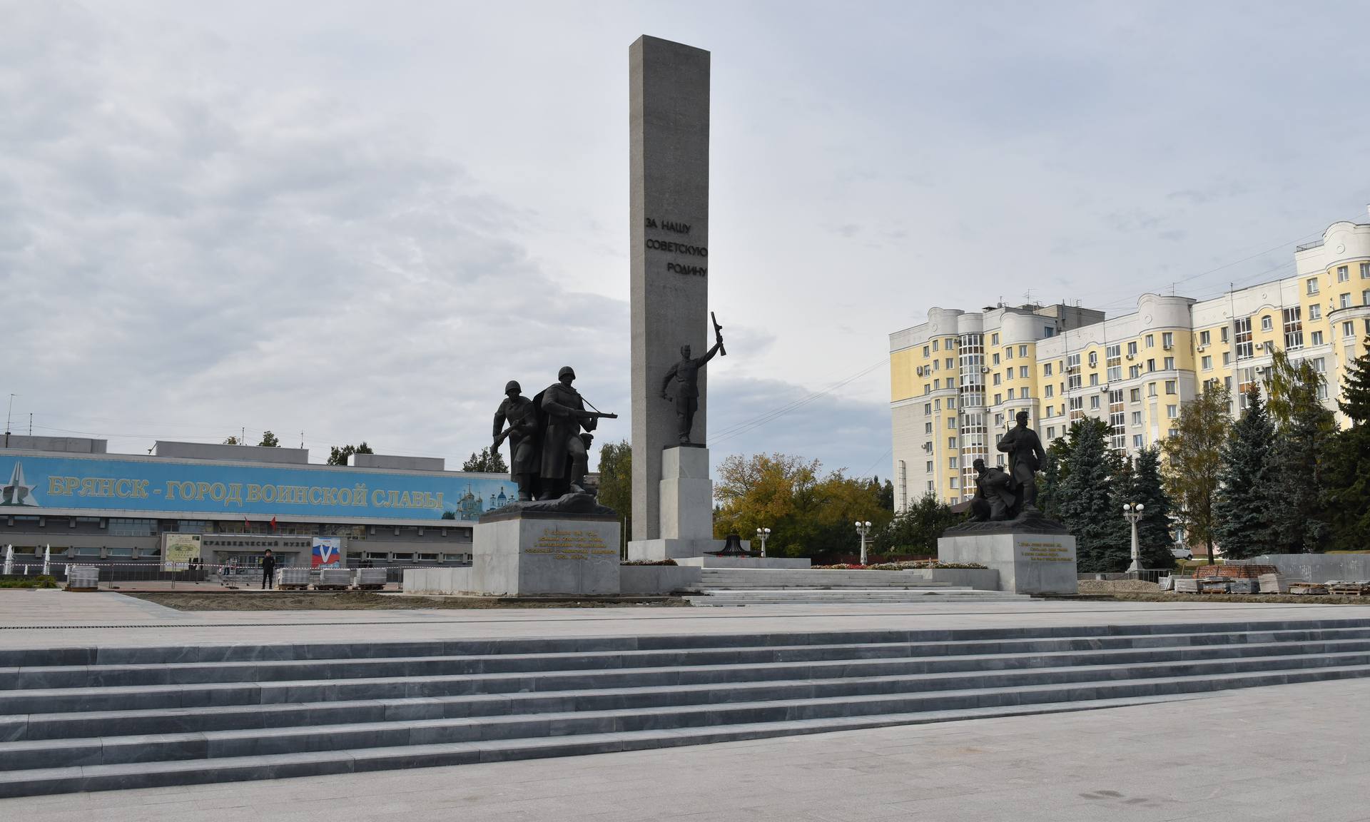 В настоящее время здесь ведется масштабная реконструкция, на объекте уже выполнен очень большой объем работ. Это достойный вклад в сохранение памяти. Как и обещали, строители сделали центральную часть площади, чтобы в этот святой день жители и гости Брянской области могли отдать дань памяти Подвигу Героев.