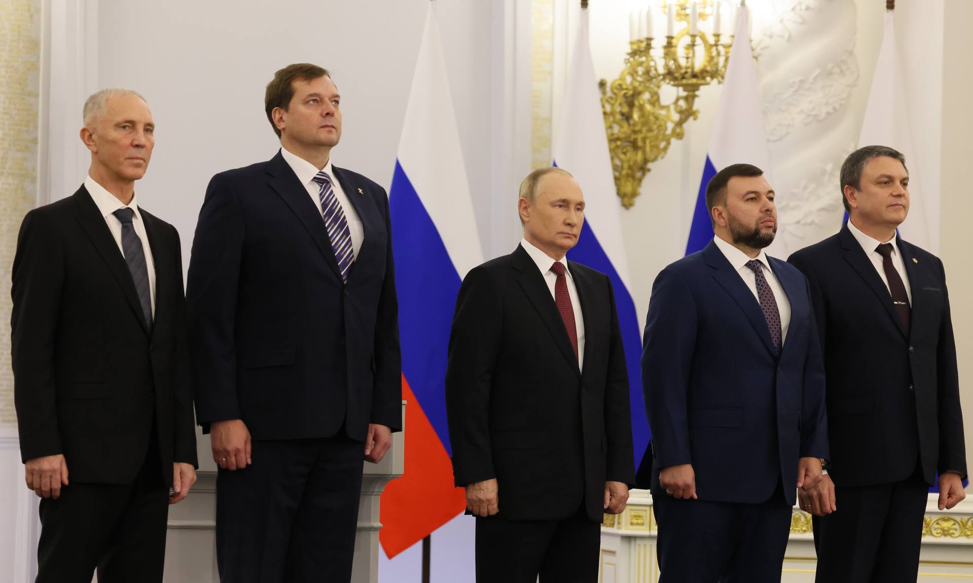 — Большая честь для меня стать свидетелем поистине исторического события! Сегодня Президент России Владимир Владимирович Путин, Леонид Иванович Пасечник, Денис Владимирович Пушилин, Владимир Васильевич Сальдо, Евгений Витальевич Балицкий подписали договоры о вхождении в состав нашей страны Луганской, Донецкой Народных Республик, Херсонской и Запорожской областей.