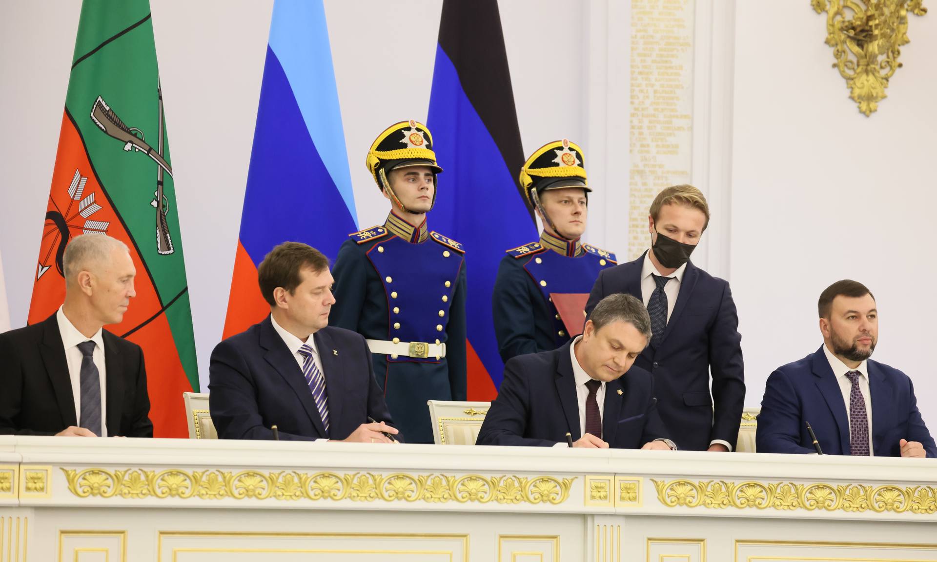 30 сентября в Георгиевском зале Кремля состоялась церемония подписания договоров о принятии в Россию Донецкой Народной Республики, Луганской Народной Республики, Запорожской области и Херсонской области и образовании новых субъектов Российской Федерации.