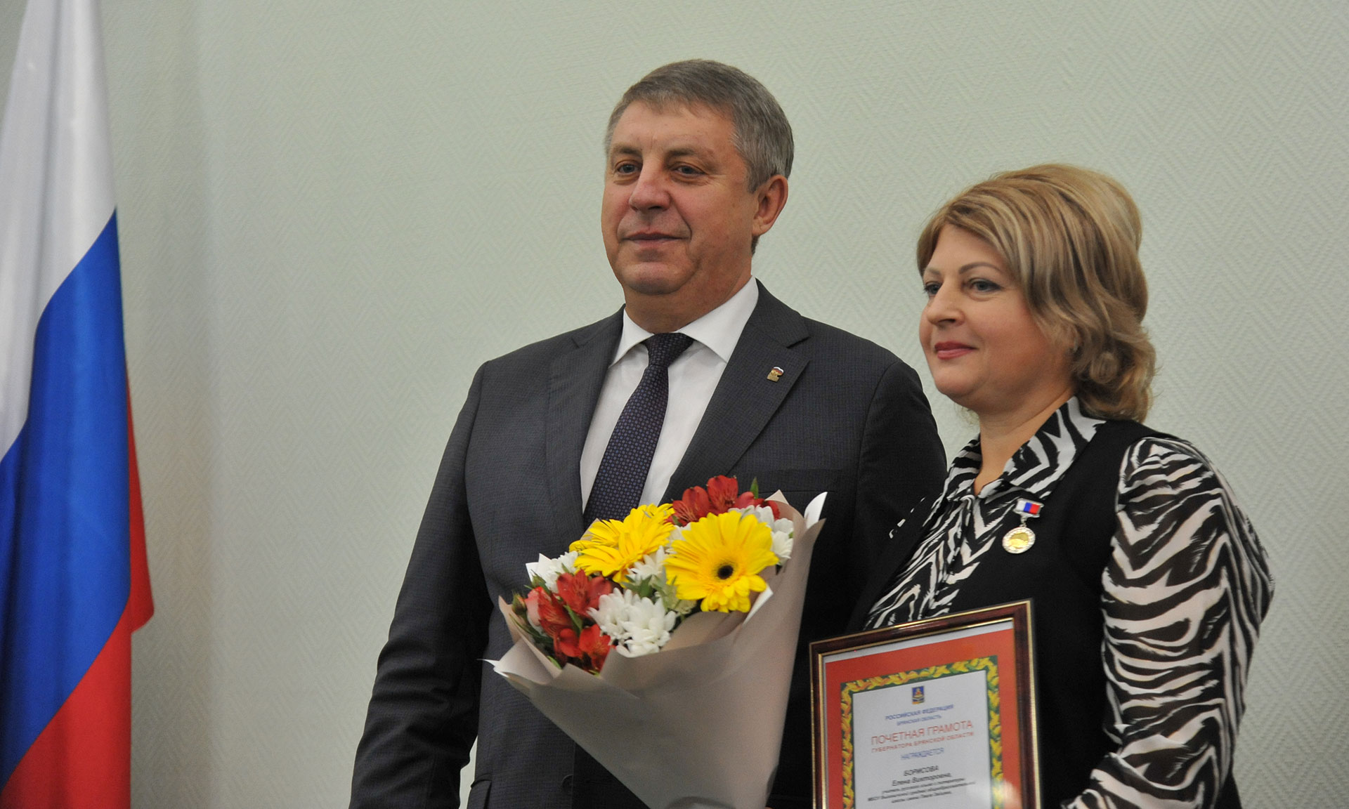 За многолетний добросовестный труд в системе образования Брянской области благодарностью главного федерального инспектора по Брянской области награждены: Елена Дедушкина — директор Климовской средней школы № 3, Галина Авхач — учитель Средней школы № 9 города Брянска с углубленным изучением отдельных предметов имени Ф. И. Тютчева, Марина Гришкина — заведующая детским садом № 48 «Машенька» города Брянска.
