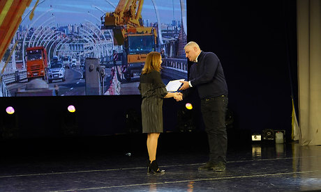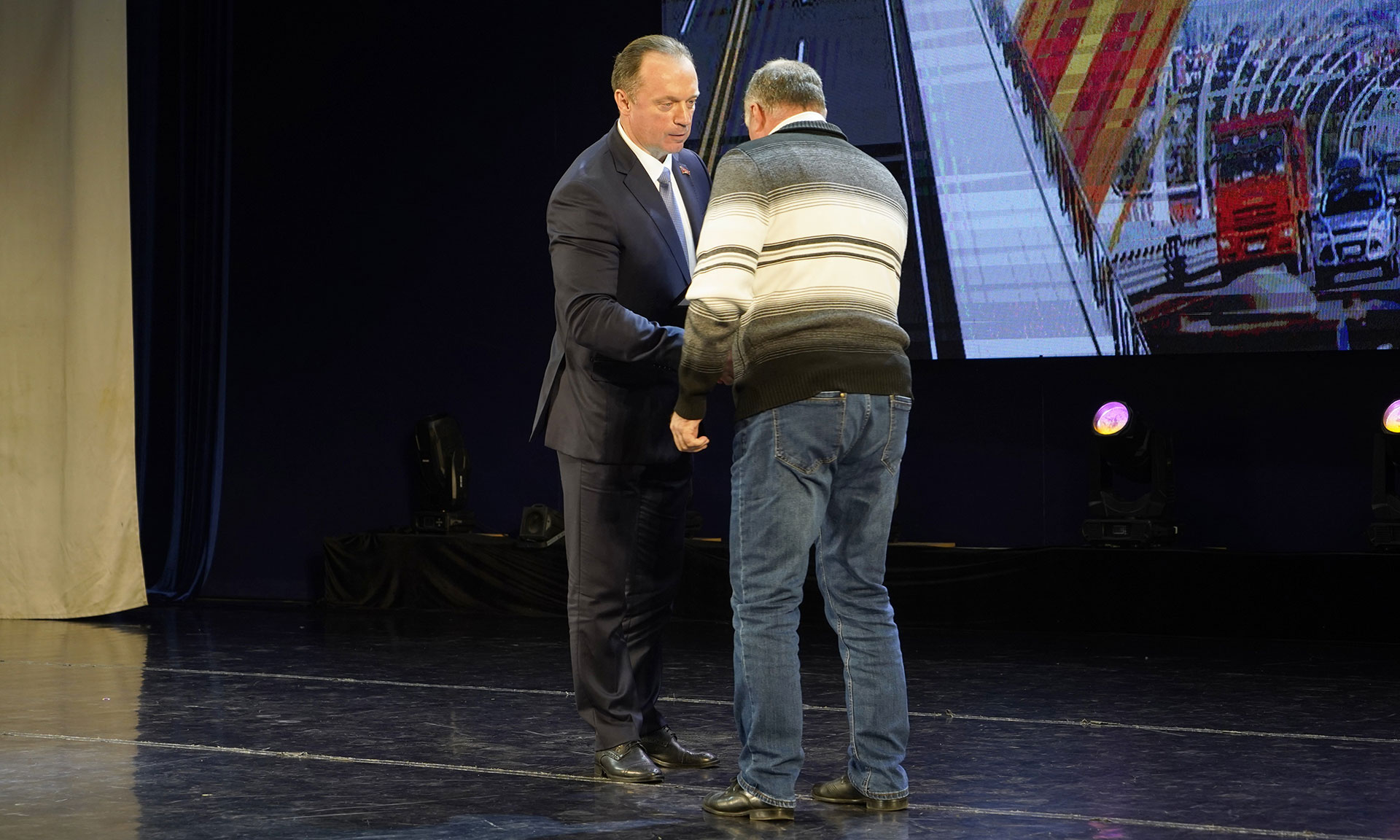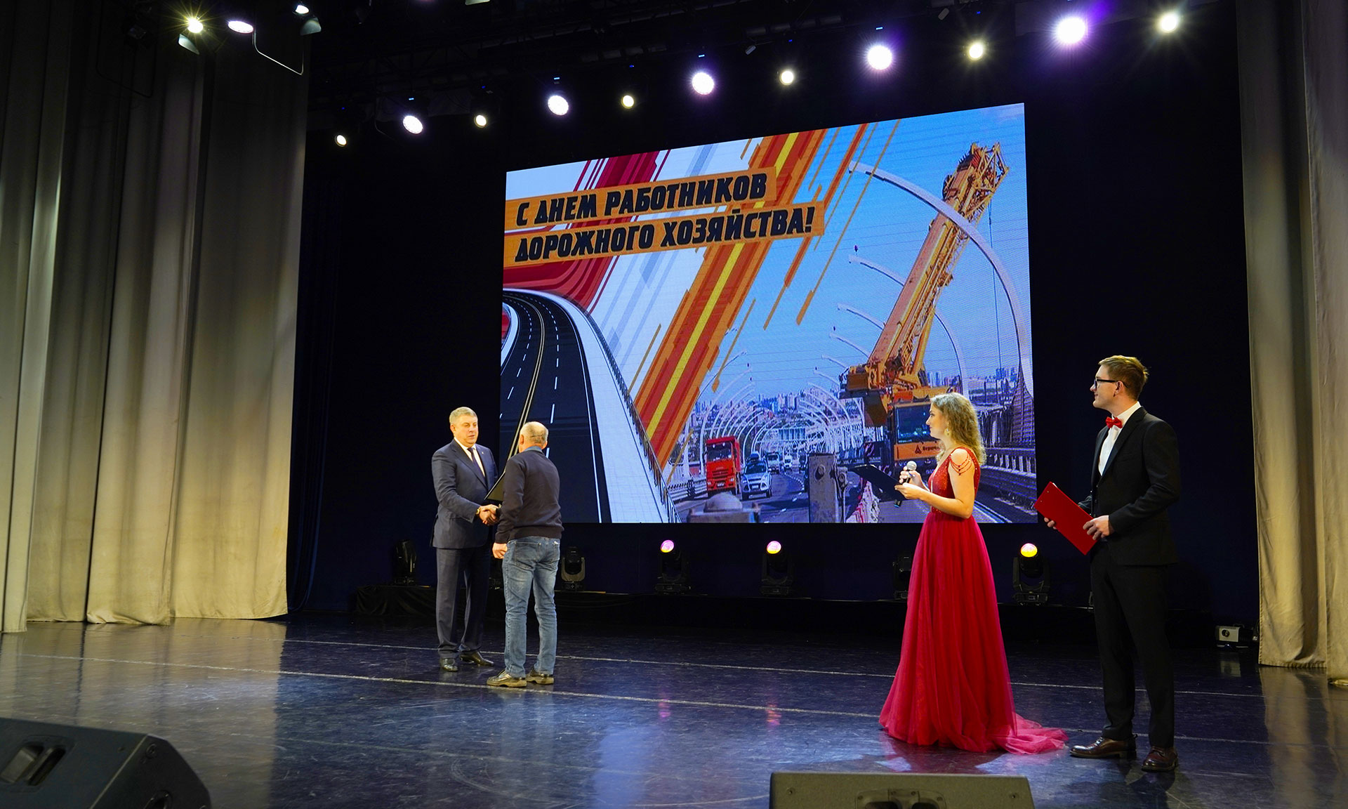 На сцене чествовали и вручали высокие награды лучшим дорожникам Брянской области, преданность своему делу для которых — одна из важнейших жизненных ценностей.