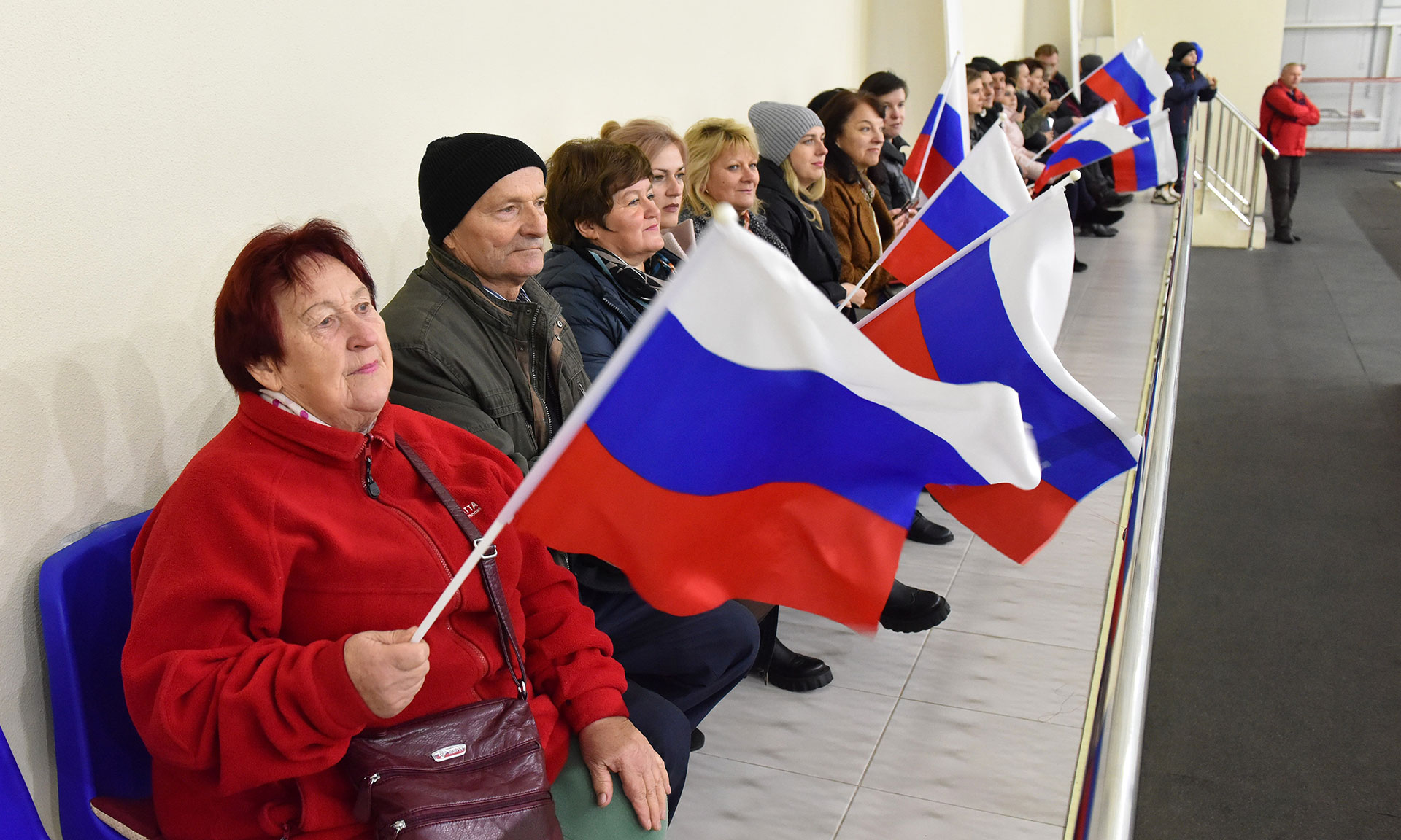 Мы за мир и справедливость! За Россию! За Президента! Нас миллионы! Мы — великая многонациональная держава! Мы гордимся Государственными символами нашей страны. Мы будем отстаивать свое право быть единой и великой Россией! — звучало в этот день с ледовой арены под аплодисменты зрителей и спортсменов.