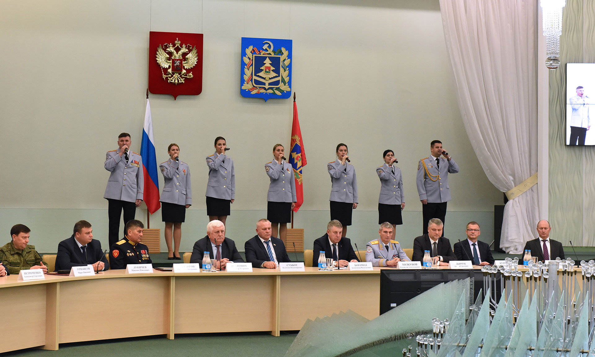 Во встрече приняли участие председатель Брянской областной Думы Валентин Суббот, главный федеральный инспектор по Брянской области Андрей Дьячук, начальник управления МВД России по Брянской области, генерал-майор полиции Владислав Толкунов, председатель Брянского областного суда Александр Курганов, прокурор Брянской области Александр Войтович, начальник управления ФСБ России по Брянской области Сергей Воронин, начальник Брянской таможни Александр Санакоев, руководитель следственного управления Следственного комитета Российской Федерации по Брянской области Максим Лукичев, начальник главного управления МЧС России по Брянской области, генерал-майор внутренней службы Вадим Уваркин, начальник управления Федеральной службы войск национальной гвардии Российской Федерации по Брянской области Иван Ванчугов, руководитель управления Федеральной службы судебных приставов по Брянской области — главный судебный пристав Брянской области Елена Бывшева, военный комиссар Брянской области Марат Урмансов, врио заместителя Губернатора Брянской области Александр Петроченко, руководители судебных органов Брянской области, органов прокуратуры, правоохранительных органов и силовых структур Брянской области, заместители Губернатора Брянской области, руководители города Брянска, заместители начальника управления МВД России по Брянской области, руководители исполнительных органов государственной власти Брянской области.