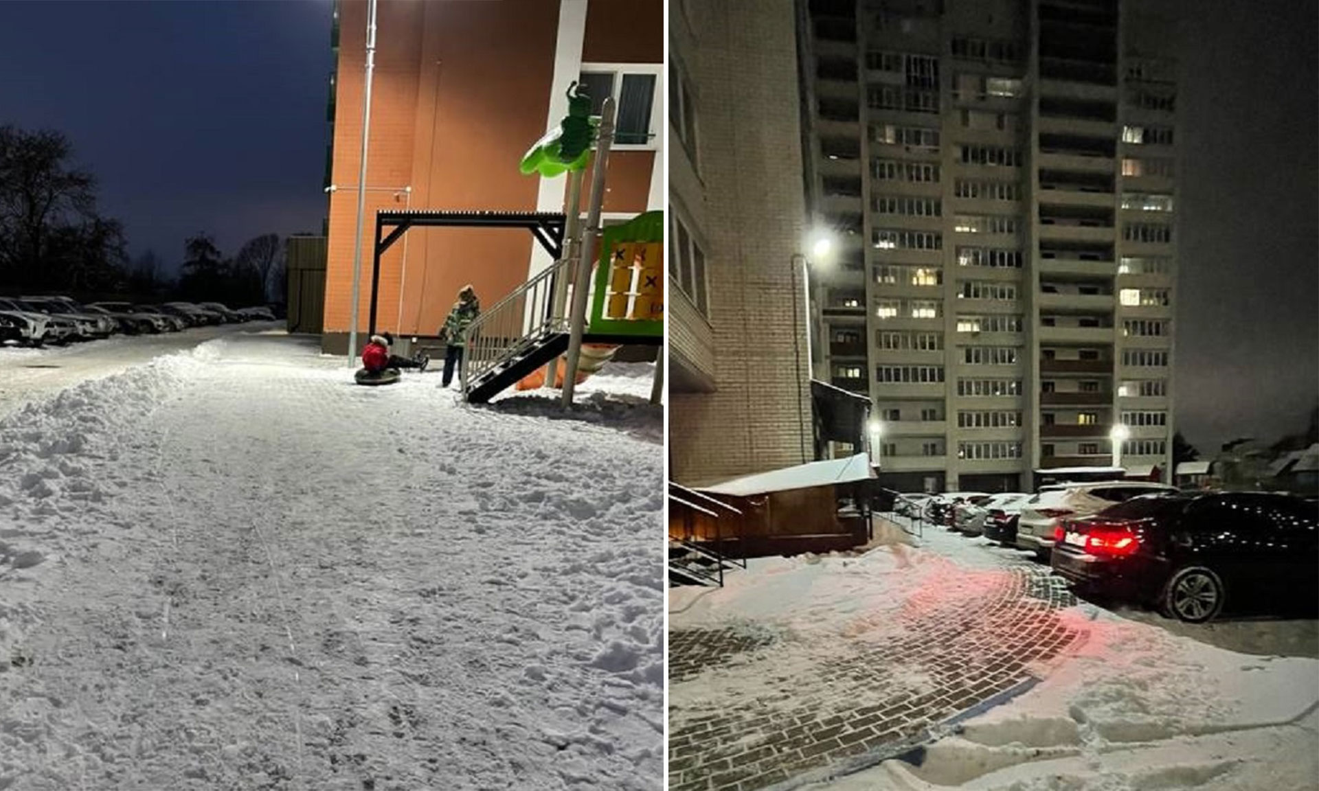 На момент осмотра представителями инспекции установлено, что по указанным адресам произведена уборка тротуаров и площадок перед входами в подъезды, но внутридворовые проезды не очищены от снега и наледи на всю ширину дороги, посыпка протовогололедной смесью не произведена.