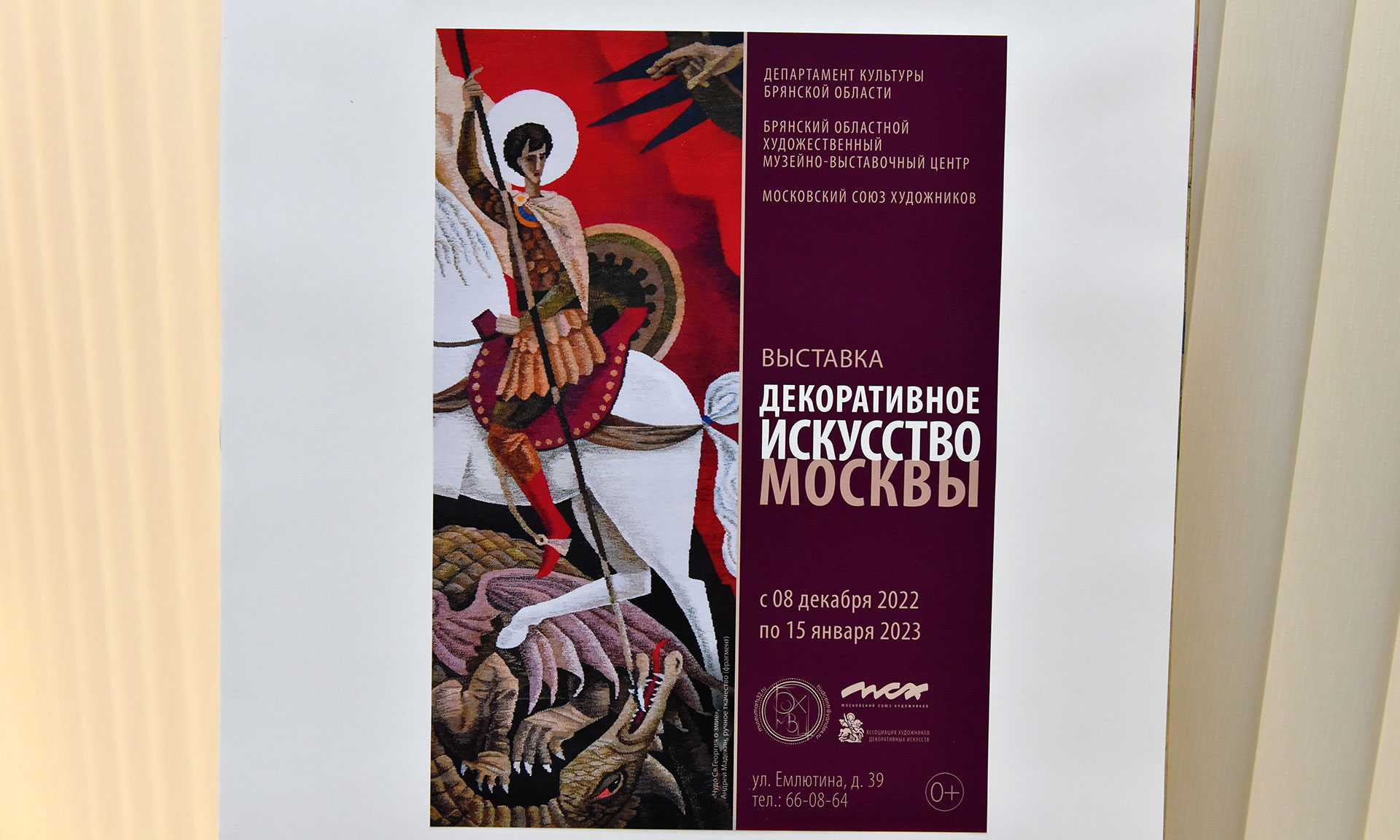Открытие в Брянске выставки Ассоциации художников декоративных искусств Московского союза художников стало знаковым событием завершения Года культурного наследия народов России, объявленного Президентом Российской Федерации Владимиром Путиным. Проект «Декоративное искусство Москвы» представляет творческие работы современных художников декоративного искусства. В экспозиции работы более 60 авторов — как молодых художников, начинающих свой творческий путь в искусстве, так и признанных мастеров декоративного искусства Москвы и России.