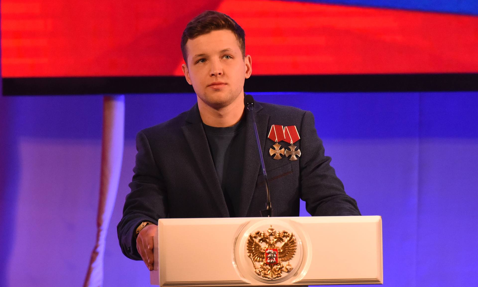 Участник специальной военной операции, кавалер двух орденов Мужества, лейтенант Никита Андреевич Златоустов обратился к участникам мероприятия: