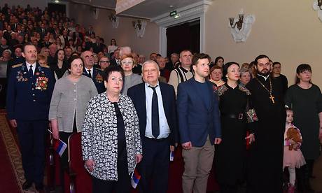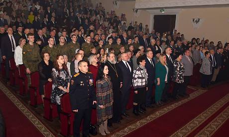 В зале присутствуют матери и вдовы погибших при выполнении воинского долга. Благодарю Вас за терпение, выдержку и силу духа, а также за воспитание молодежи на примере ваших мужей и сыновей.