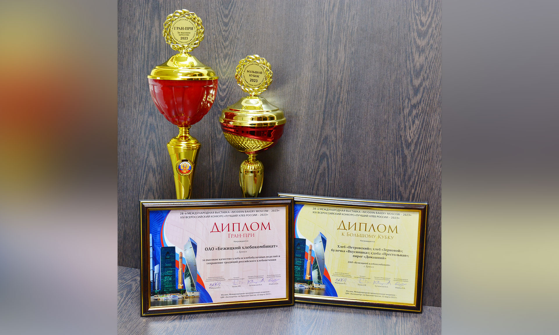 ОАО «Бежицкий хлебокомбинат» удостоено высшей награды всероссийского конкурса: Кубок и диплом ГРАН-ПРИ — за сохранение традиций российского хлебопечения и высокое качество хлеба и хлебобулочных изделий.