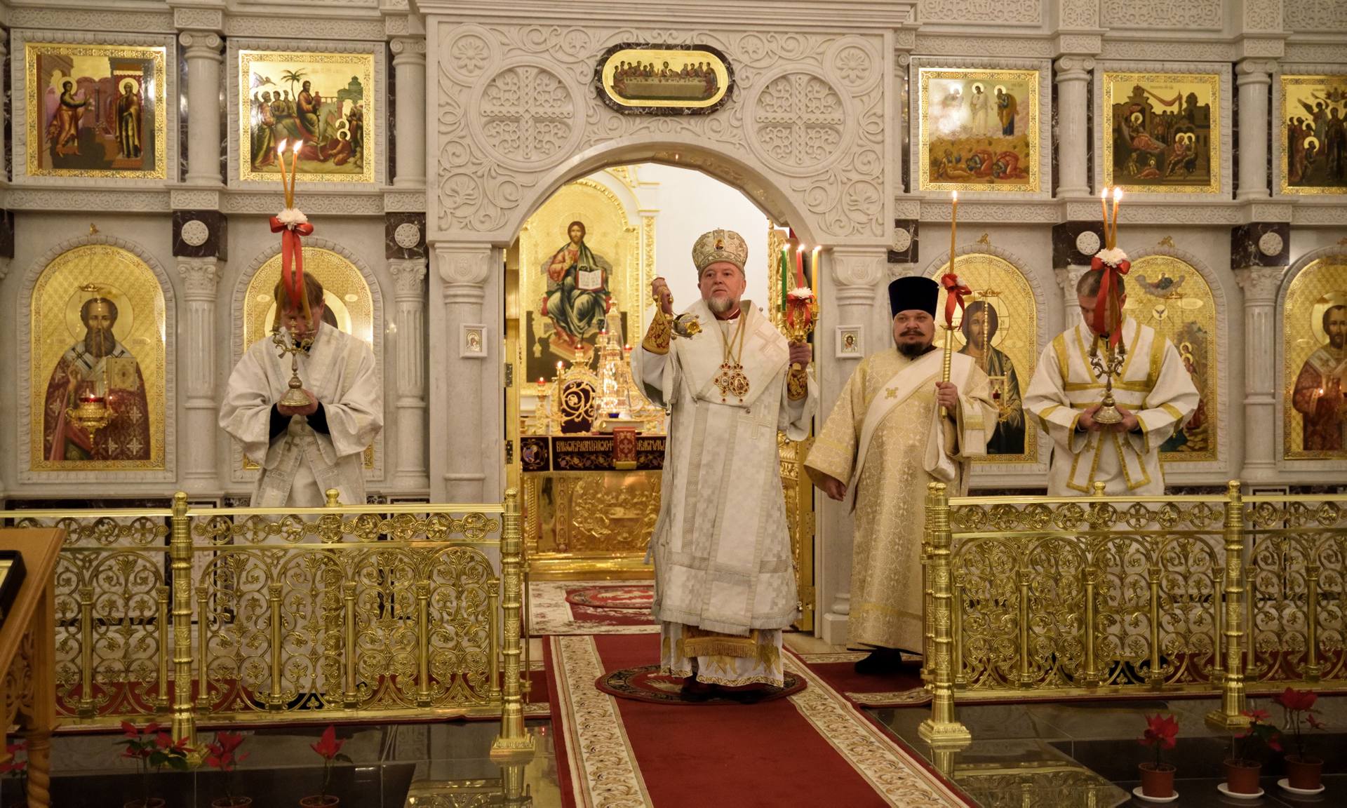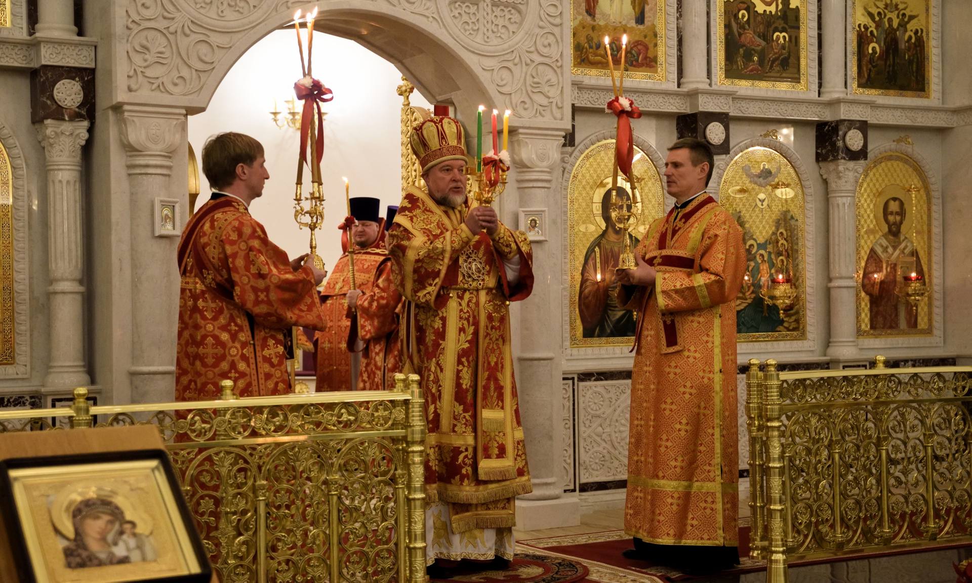 Епископ Владимир совершил Пасхальные Богослужения — полунощницу, Крестный ход, пасхальную заутреню и Литургию святителя Иоанна Златоуста. В полночь был совершен крестный ход вокруг кафедрального собора. За Пасхальной заутреней Владыка Владимир прочитал Слово огласительное святителя Иоанна Златоуста на Святую Пасху.