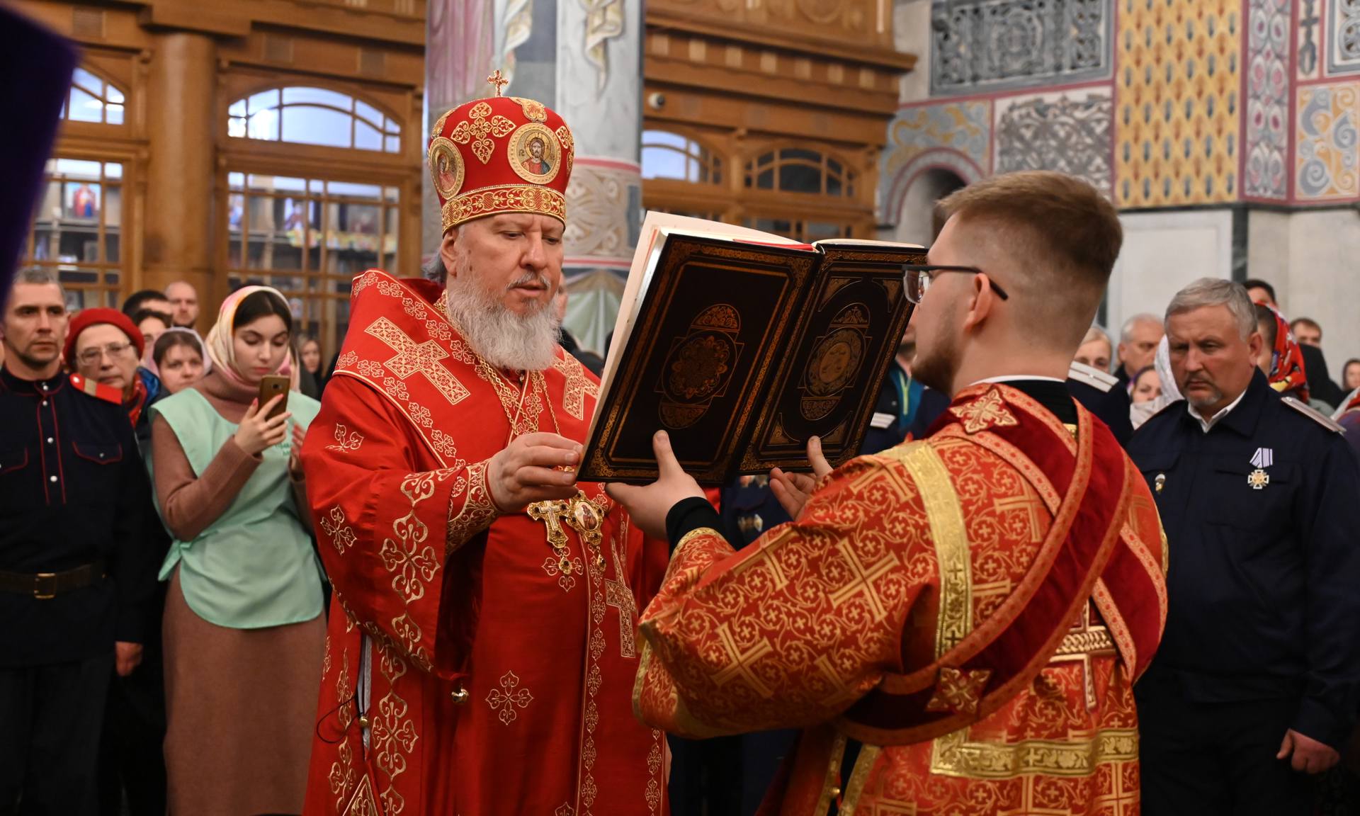 В полночь под пение стихиры «Воскресение Твое, Христе Спасе, Ангели поют на Небесех, и нас на земли сподоби чистым сердцем Тебе славити» был совершен крестный ход вокруг главного городского храма. За Пасхальной заутреней Его Высокопреосвященство прочитал Слово огласительное святителя Иоанна Златоуста на Святую Пасху.