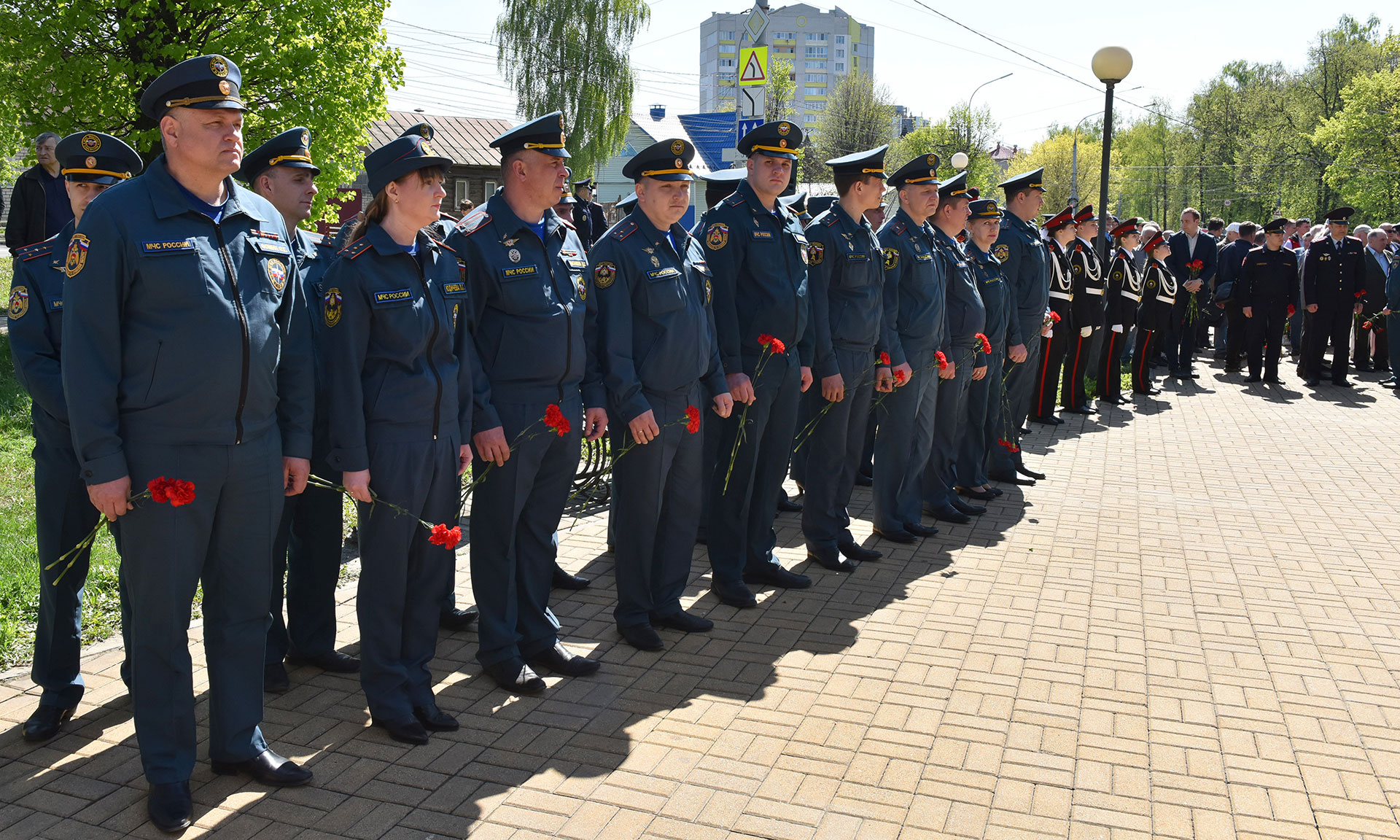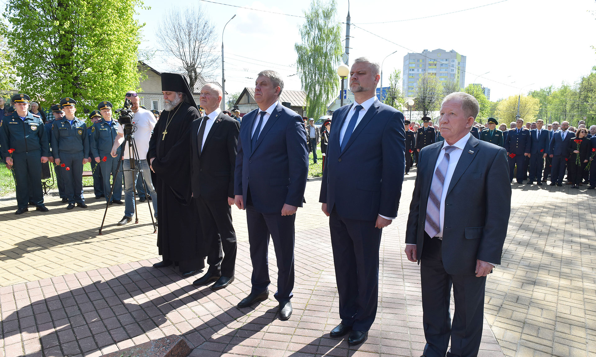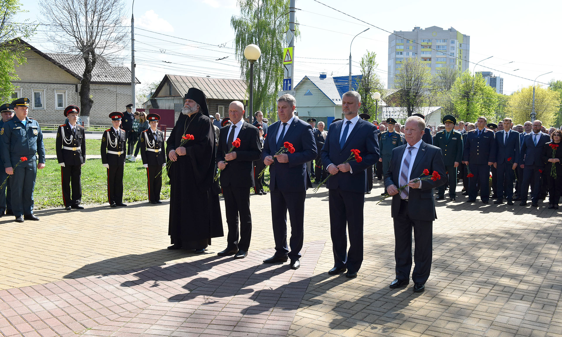 В знак памяти о тех, кто принял на себя первые радиационные удары, кто отдал свои жизни, корзину с цветами и цветы к подножию памятника жертвам чернобыльской катастрофы возложили Губернатор Брянской области Александр Богомаз, заместитель председателя Брянской областной Думы Владимир Пронин, главный федеральный инспектор по Брянской области Андрей Дьячук, руководитель следственного управления Следственного комитета РФ по Брянской области Максим Лукичев, начальник управления ФСИН России по Брянской области Сергей Герасимов, начальник Брянской таможни Сергей Санакоев, заместитель начальника управления ФСБ России по Брянской области Роман Кожемяченко, заместитель начальника управления Росгвардии по Брянской области Андрей Борисов, заведующий отделом по взаимодействию церкви и общества Брянской епархии иеромонах Корнилий (Недбаевский), председатель правления Брянской областной общественной организации инвалидов-чернобыльцев «Союз Чернобыль» Вячеслав Карнюшин, уполномоченный по правам человека в Брянской области Вячеслав Тулупов, заместители Губернатора Брянской области, врио заместителя Губернатора Брянской области, заместитель председателя Брянской областной Думы, руководители города Брянска, а также участники ликвидации аварии на Чернобыльской атомной электростанции, представители общественных организаций, медицинских учреждений, представили учебных заведений, волонтеры, юнармейцы.
