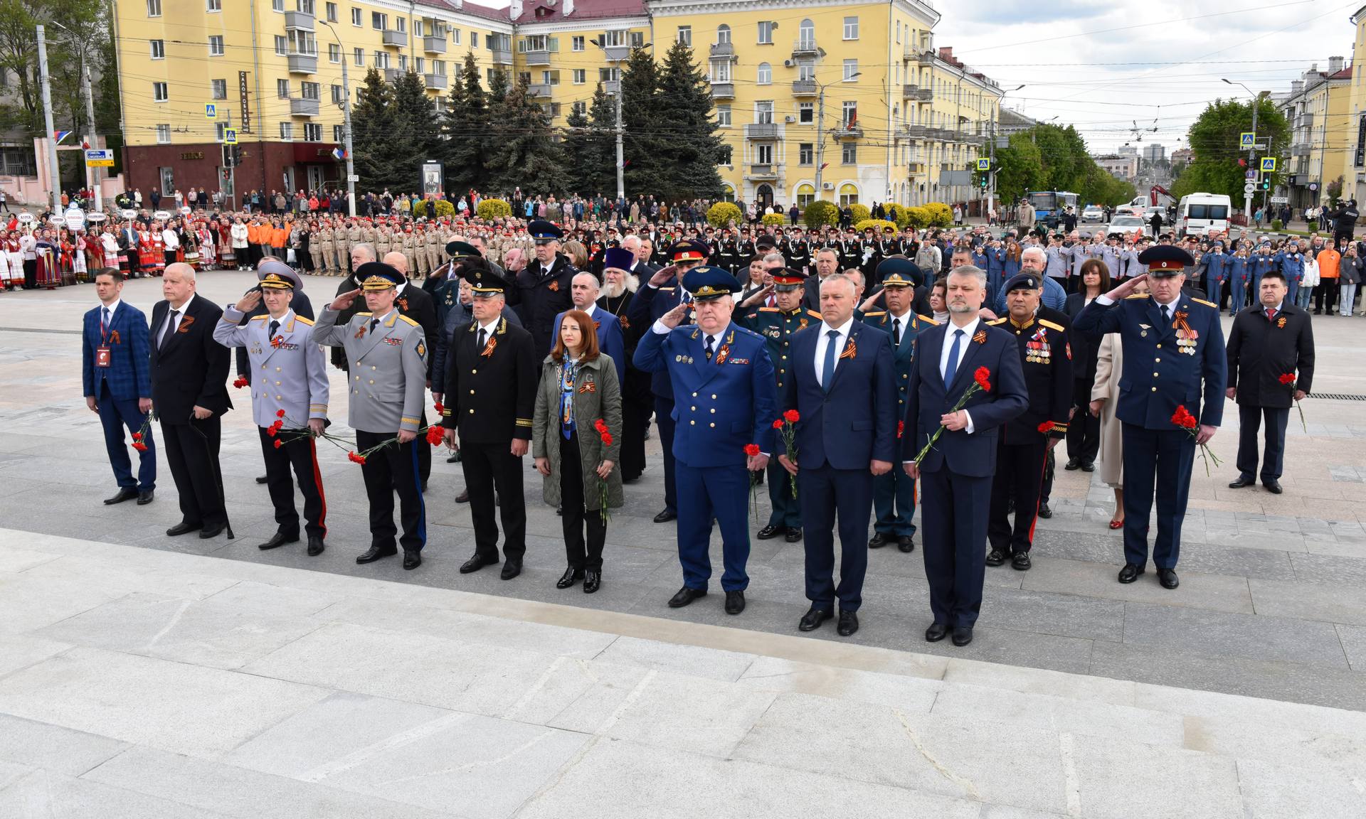 В официальной церемонии возложения приняли участие Губернатор Брянской области Александр Богомаз, митрополит Брянский и Севский Александр, ветеран Великой Отечественной войны 1941 — 1945 годов Николай Степанович Редикульцев, бывшая малолетняя узница фашистского концлагеря Роза Дмитриевна Трошина, Герои Российской Федерации Андрей Анатольевич Фроленков и Александр Викторович Постоялко, матери погибших защитников Отечества: председатель постоянного комитета Брянской областной Думы по образованию, науке, культуре и СМИ Людмила Федоровна Журавлева, член Общественной палаты Российской Федерации, член Брянского регионального отделения Общероссийской общественной организации семей погибших защитников Отечества Лидия Филипповна Ермакова, председатель Брянского регионального отделения «Комитет семей воинов Отечества» Марина Николаевна Седнева, Галина Георгиевна Василева;