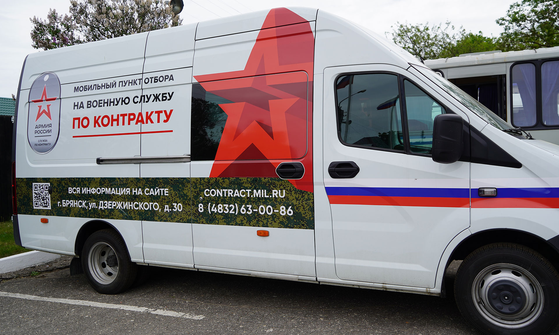 Адрес пункта отбора на военную службу по контракту: г. Брянск, ул. Дзержинского, д. 30, телефон +7 (4832) 63-00-86, e-mail: povsk-bryansk@mil.ru. Также можно обратиться в военный комиссариат по месту жительства.