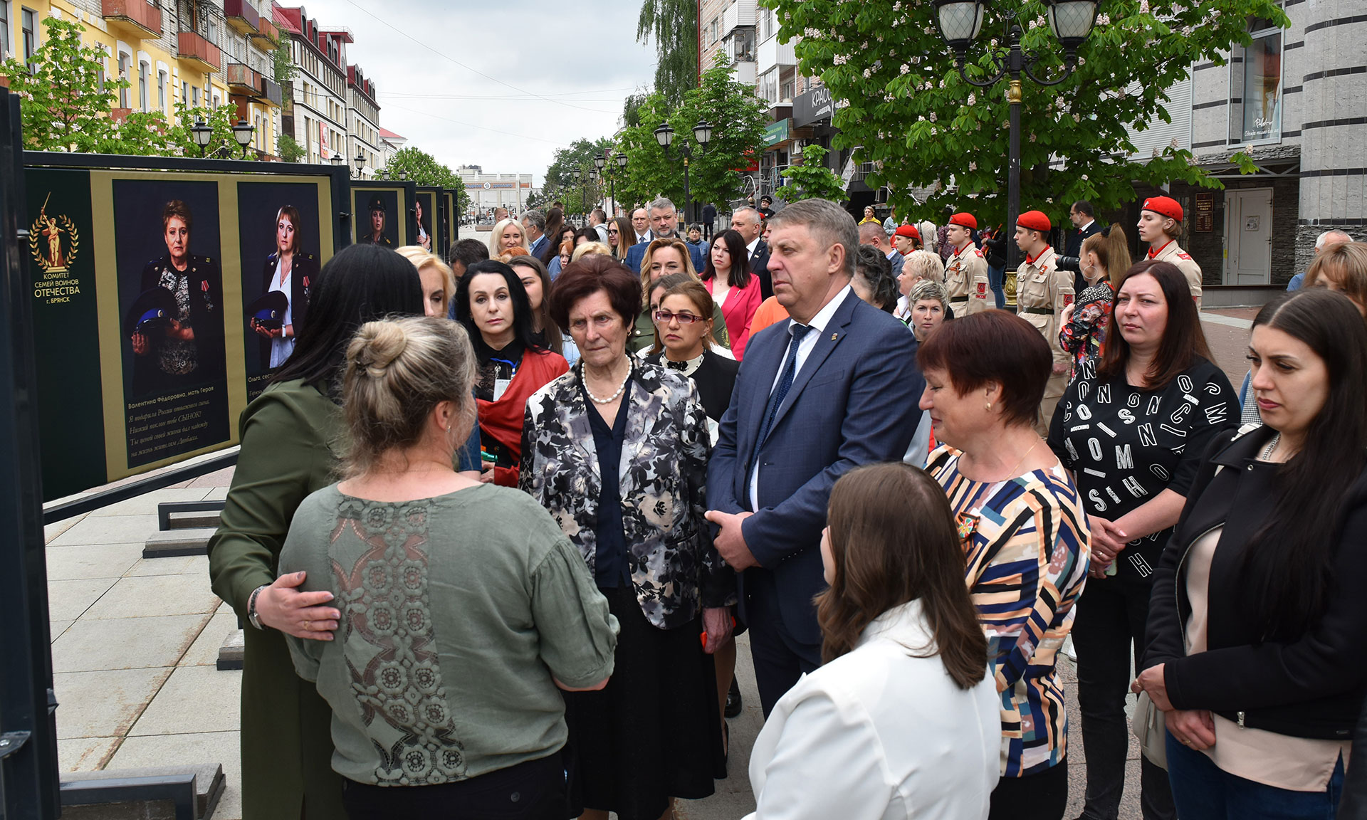 Перед началом выставки Губернатор Александр Богомаз пообщался с женами, матерями и сестрами военнослужащих. Губернатор отметил, что проект получил огромный отклик, и теперь одна за одной выставки открываются по всей стране, чтобы поддержать наших бойцов, которые сейчас защищают Родину, и отдать дань памяти Героям.
