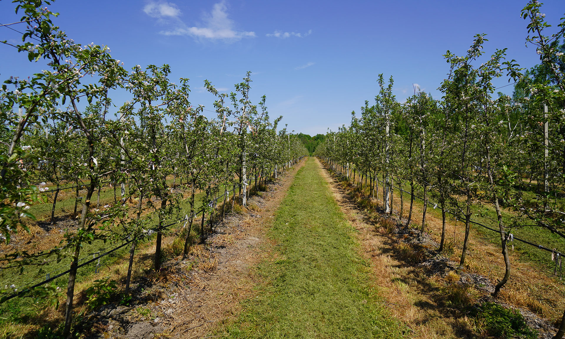В плодопитомнике с успехом вырастили районированные саженцы вишни, устойчивые к низким температурам и приспособленные к механической уборке, а также саженцы яблонь нескольких известных в мире сортов. С помощью современной садовой техники саженцы своевременно кормят, очищают землю от сорняков. В каждом ряду действует капельное орошение. Необходимый уход за молоденькими растениями ведут работники питомника.
